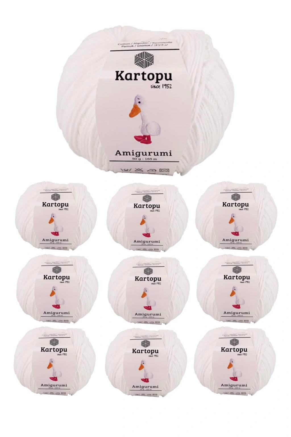 10 Adet Amigurumi El Örgü İpi 50gr 010 Kartopu Amigurumi El Örgü İpleri, Amigurumi sevenler için özel olarak hazırlanmıştır. Canlı ve pastel renk tonlarının olduğu bu seri, Kartopu Pamuklu Bebe El Örgü İpine benzemektedir. Yapısı yumuşaktır ve amigurumi yapımı için idealdir. Metraj: 130 mt. Gramaj: 50 gr. İçerik: %51 Akrilik %49 Pamuk Şiş numarası: 3.5-4.5 mm Tığ Numarası: 2.5-3.5 mm Paket İçeriği : 10 Adet Amigurumi El Örgü İpi 50gr 010