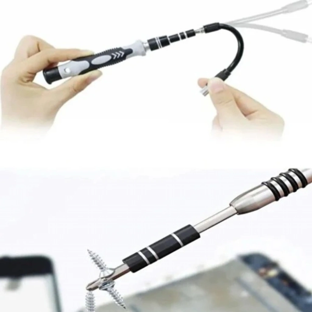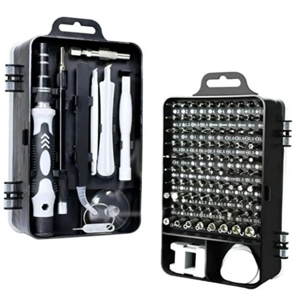 115 PARÇA MANYETİK UÇLU HASSAS TORNAVİDA SETİÜrün Özellikleri 115 parça manyetik uçlu hassas tornavida seti, elektronik ve mekanik onarım işlemlerinde maksimum kontrol ve hassasiyet sağlamak üzere tasarlanmıştır. Manyetik uçlar sayesinde vidalar çalışma sırasında düşmez, özellikle küçük ve dar alanlarda güvenli kullanım sunar. Set içerisinde yer alan farklı tip ve ölçülerde uçlar; cep telefonu, laptop, tablet, saat, gözlük, oyun konsolu, kumanda, kamera, devre kartı ve benzeri hassas cihazların onarımı için geniş bir kullanım alanı oluşturur. Ergonomik tornavida sapı, uzun süreli çalışmalarda el yorgunluğunu azaltır ve kaymaz yapısı ile konforlu bir tutuş sağlar. Esnek uzatma aparatı sayesinde erişilmesi zor noktalarda rahat çalışma imkânı sunar. Dayanıklı malzemeden üretilmiş uçlar, uzun ömürlü kullanım ve yüksek performans sağlar. Düzenli taşıma ve saklama imkânı sunan özel kutusu sayesinde hem ev hem de profesyonel atölye kullanımı için idealdir. Paket İçeriği 1 Adet 115 Parça Manyetik Uçlu Hassas Tornavida Seti