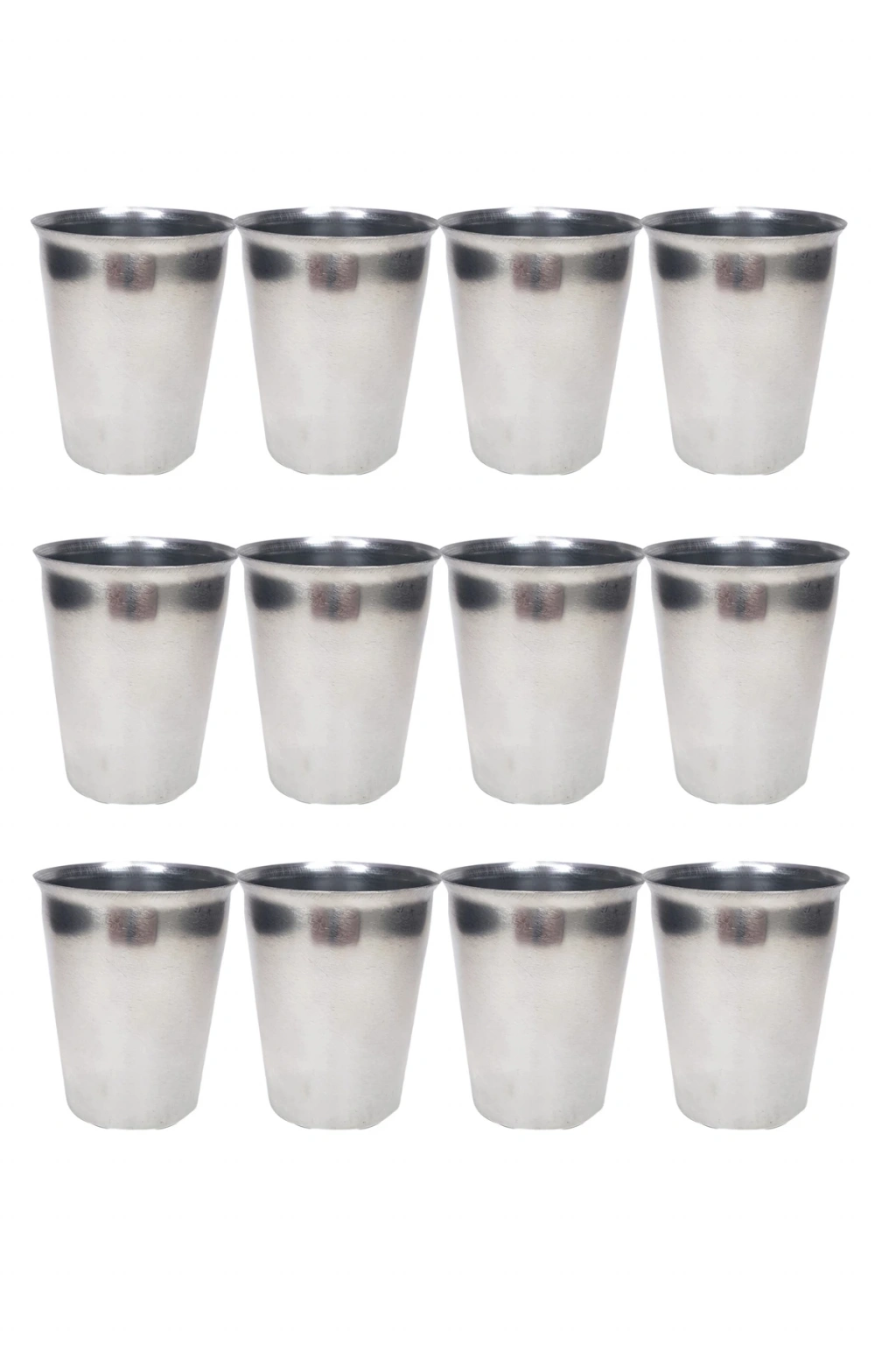 12 Adet Paslanmaz Çelik Krom Bardak 9 X 7,5 X 5,5cm