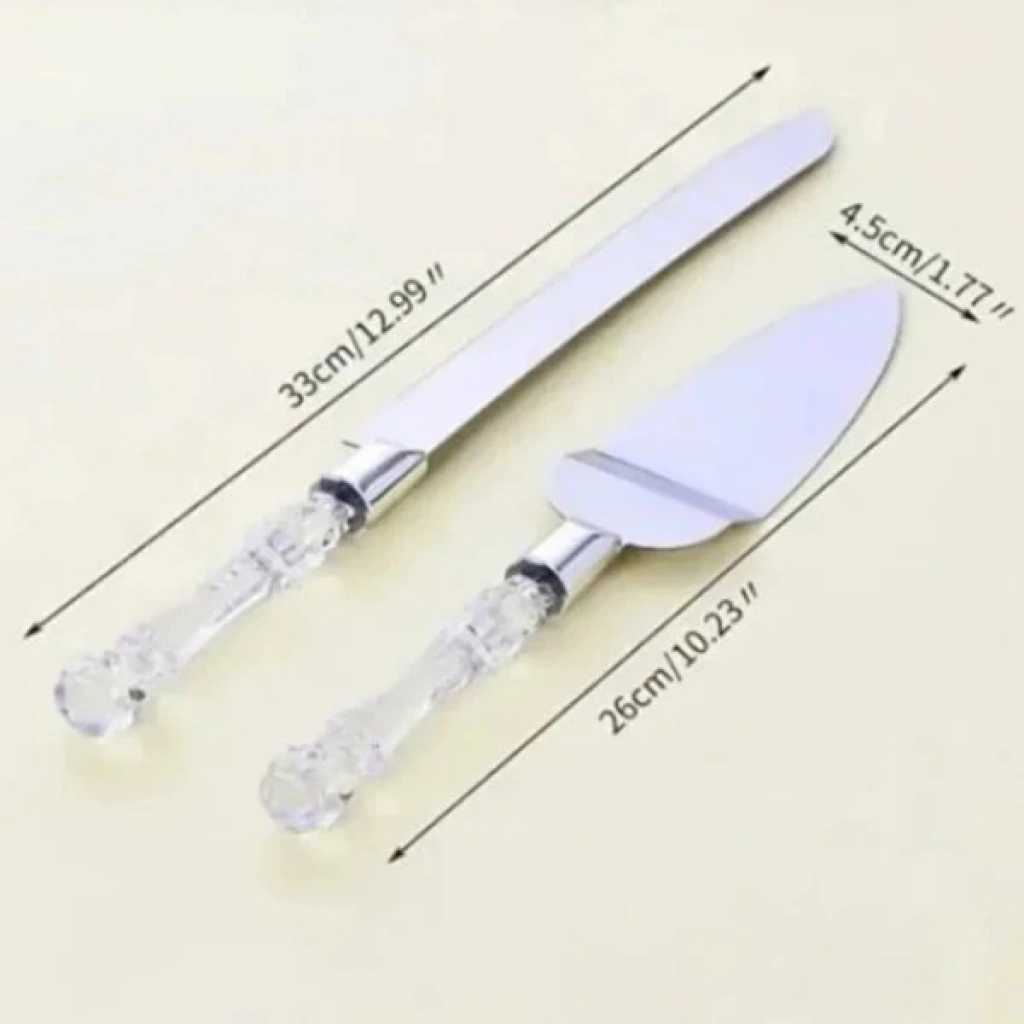 2 PARÇA SERVİS SETİÜrün Özellikleri 2 Parça Servis Seti şık ve özel tasarımıyla pasta, kek ve tatlı servislerinde hem estetik hem de pratik kullanım sağlar. Set içerisinde yer alan uzun servis bıçağı 33 cm, spatula ise 26 cm uzunluğunda olup ideal boyutları sayesinde dilimleri düzgün şekilde kesip servis etmeye yardımcı olur. Şeffaf görünümlü kabza tasarımı sofralara zarif bir görünüm kazandırırken paslanmaz çelik servis yüzeyleri dayanıklılık ve uzun ömürlü kullanım sunar. Kesim bıçağı 4,5 cm genişliğiyle rahat kavrama ve dengeli kesim sağlarken, spatula yüzeyi dilimleri kırmadan almayı kolaylaştırır. Özel günler, doğum günleri, nişan ve düğün pastalarında tercih edilebilecek zarif sunum alternatifi olan bu set, mutfakta hem günlük kullanıma hem davet sofralarına uygundur. Paketli halde gönderilir. Paket İçeriği 1 Adet Servis Bıçağı (33 cm) 1 Adet Servis Spatulası (26 cm)