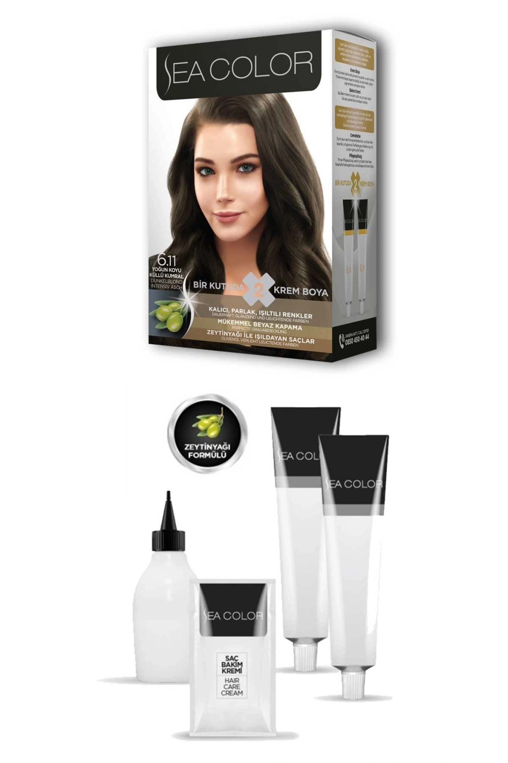 Sea Color 2 tüp Krem Saç Boyası Seti Yoğun Koyu Küllü Kumral No:6.11 Zeytinyağlı özel formülü ile saçlarınızı boyarken ışıldayan saçlar elde edebilirsiniz. Canlandırıcı ve saç besleyici özelliğe sahiptir. Zengin renk seçeneğine sahip sea color tüp krem boya kalıcı, parlak ve ışıltıtılı saç boyası isteyenler için idealdir. Mükemmel beyaz kapama sayesinde dip boyalarınızda ve tüm boyamalarda gönül rahatlığı ile kullanabilirsiniz. Krem boya formülündeki özel kondisyonerler ile parlak ve canlı renkler, kusursuz beyaz kapama özelliği ve içerisindeki yoğun pigmentlerle solmayan renkler elde edebilirsiniz. Güneşte saçlarınızın ışıltısı göz alıcı olacak ve tüm dikkatleri üstünüze çekeceksiniz. Paket içerisinde bulunan saç bakım kremi sayesinde yumuşaklık ve ipeksi parlak görünüm sağlar. Kullanma prospektüsü kutunun iç kısmına basılıdır ilk defa kullanım için detaylı anlatım mevcuttur. Kutu üzerindeki OR kodunu telefonunuzdan okutarak uygulama videosuna da ulaşabilirsiniz. Işıltılı sağlıklı ve parlak saçlar için sea color tüp krem boya en ideal seçenek olacaktır. Mutlu ve güzel günlerde kullanmanız dileğiyle. Kutu içeriği: 2 adet tüp krem saç boyası ( 2x50 ml) 1 oksidan krem (75 ml) 1 saç bakım kremi ( 10 ml) 1 çift saç boyama eldiveni