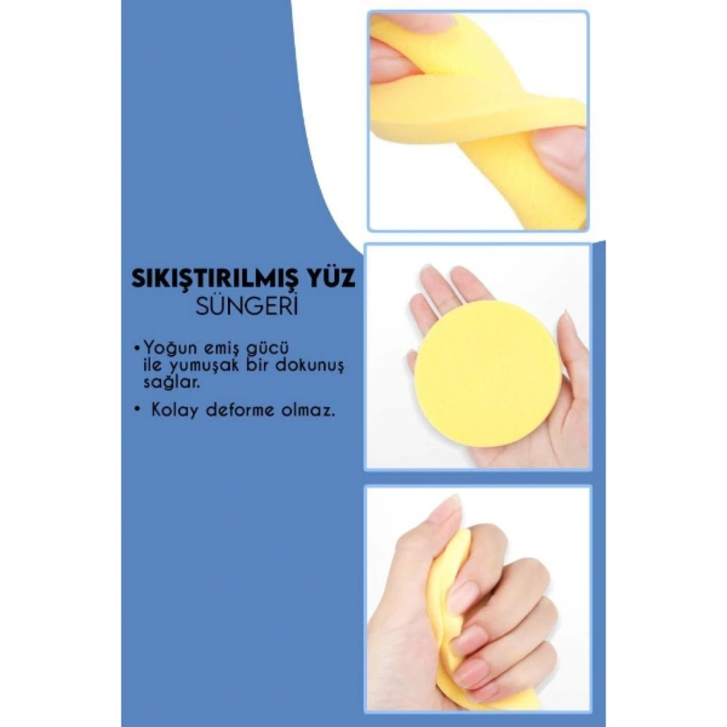 2'Lİ CİLT TEMİZLEME SÜNGERİ SETİ Ürün Özellikleri 2'li cilt temizleme süngeri seti, günlük yüz temizleme rutininizi daha etkili ve pratik hale getirmek için tasarlanmıştır. Yumuşak dokulu yapısı sayesinde cilt temizleme ürünleri ile birlikte kullanıldığında cildi nazikçe arındırmaya yardımcı olur. Sünger yüzeyi temizleme jelini veya köpüğünü eşit şekilde dağıtarak ciltte homojen temizlik sağlar. Yüz temizleme süngeri nemlendirildikten sonra üzerine temizleme ürünü uygulanarak köpürtülür ve oval hareketlerle cilde uygulanır. Ilık su ile durulandığında ciltte ferah ve temiz bir his bırakır. 2'li cilt temizleme süngeri set halinde sunulduğu için yedekli kullanım imkânı sağlar ve hijyen açısından avantaj sunar. Günlük bakım rutini için uygun olan cilt temizleme sünger seti, makyaj kalıntılarının ve gün boyu biriken kirin temizlenmesine destek olur. Ürün Teknik Özellikleri Özellik Açıklama Ürün Adı 2'li Cilt Temizleme Süngeri Seti Malzeme Yumuşak temizleme süngeri materyali Renk Görseldeki renklerden oluşan set Kullanım Alanı Yüz temizleme ve cilt bakımı Paket İçeriği 2 adet cilt temizleme süngeri