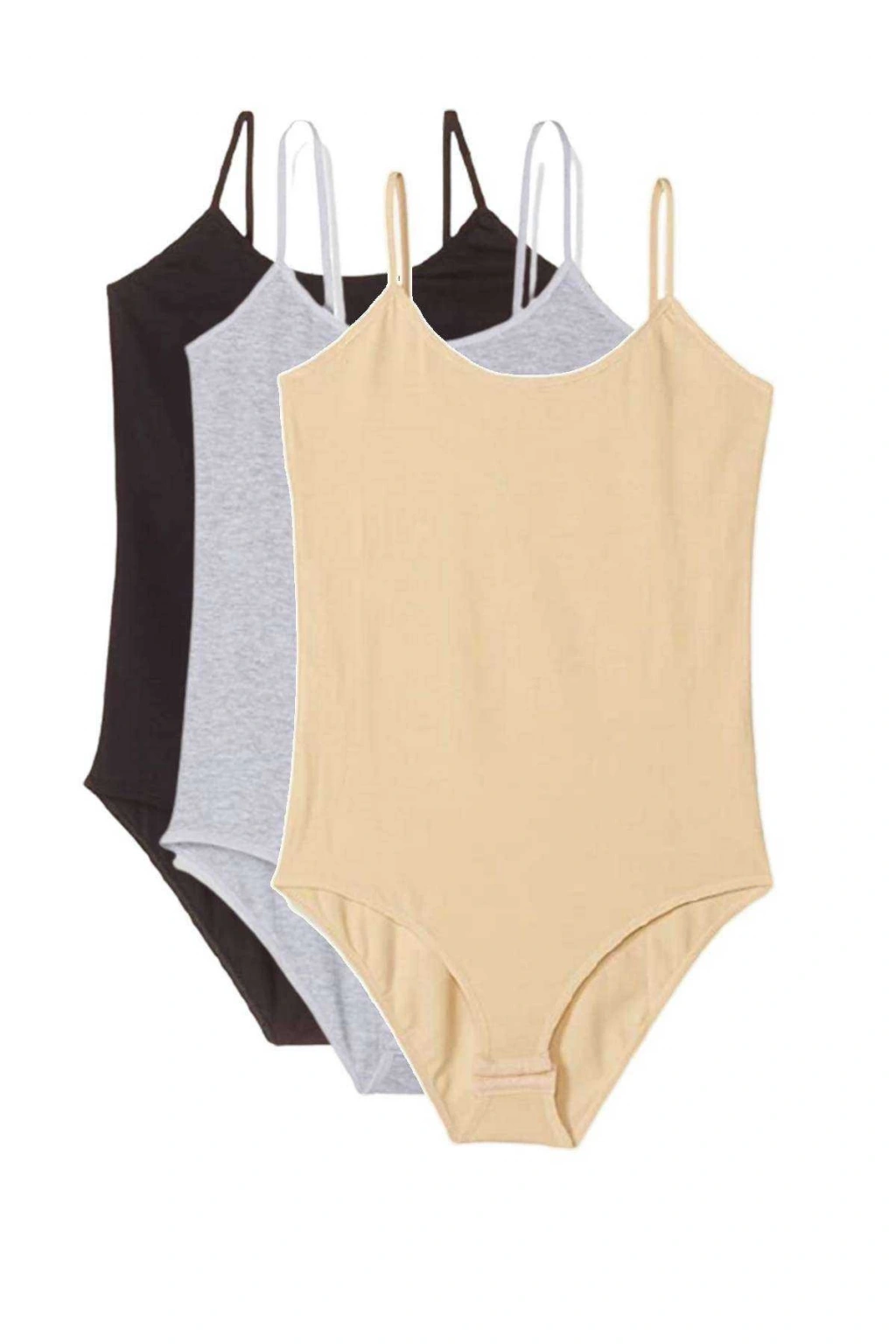 3 Adet İp Askılı Kadın Çıtçıtlı Body Siyah Gri Ten