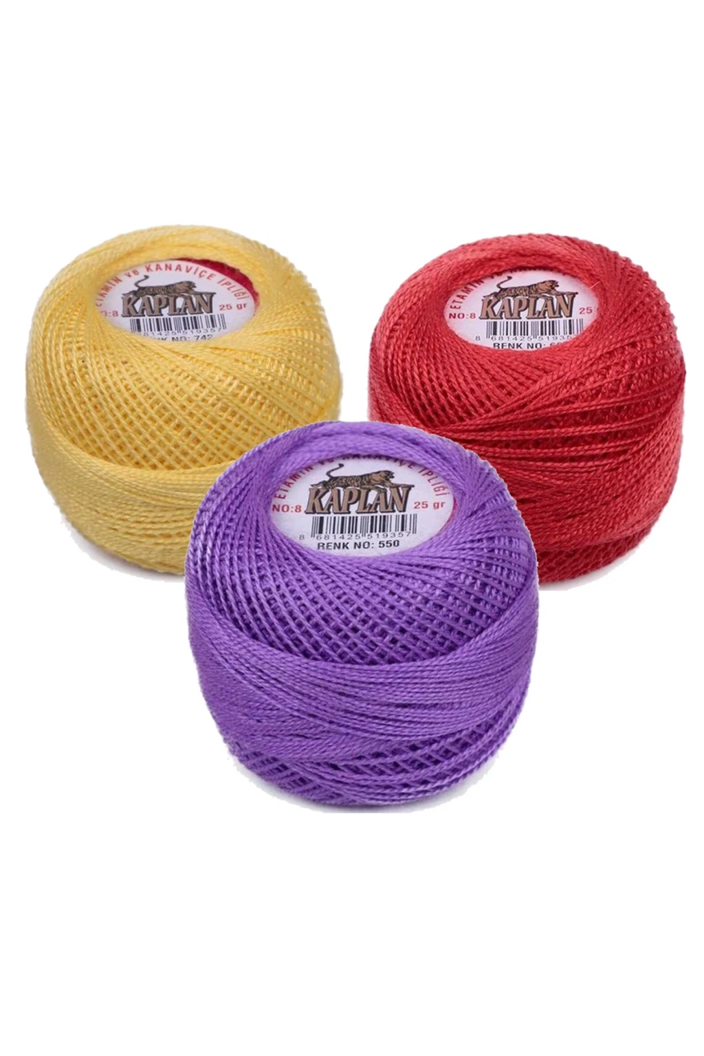 3 Adet Kaplan Etamin Ve Kanaviçe İpi 8 No Kod/Renk: 742 - 666 - 550 - Ryl