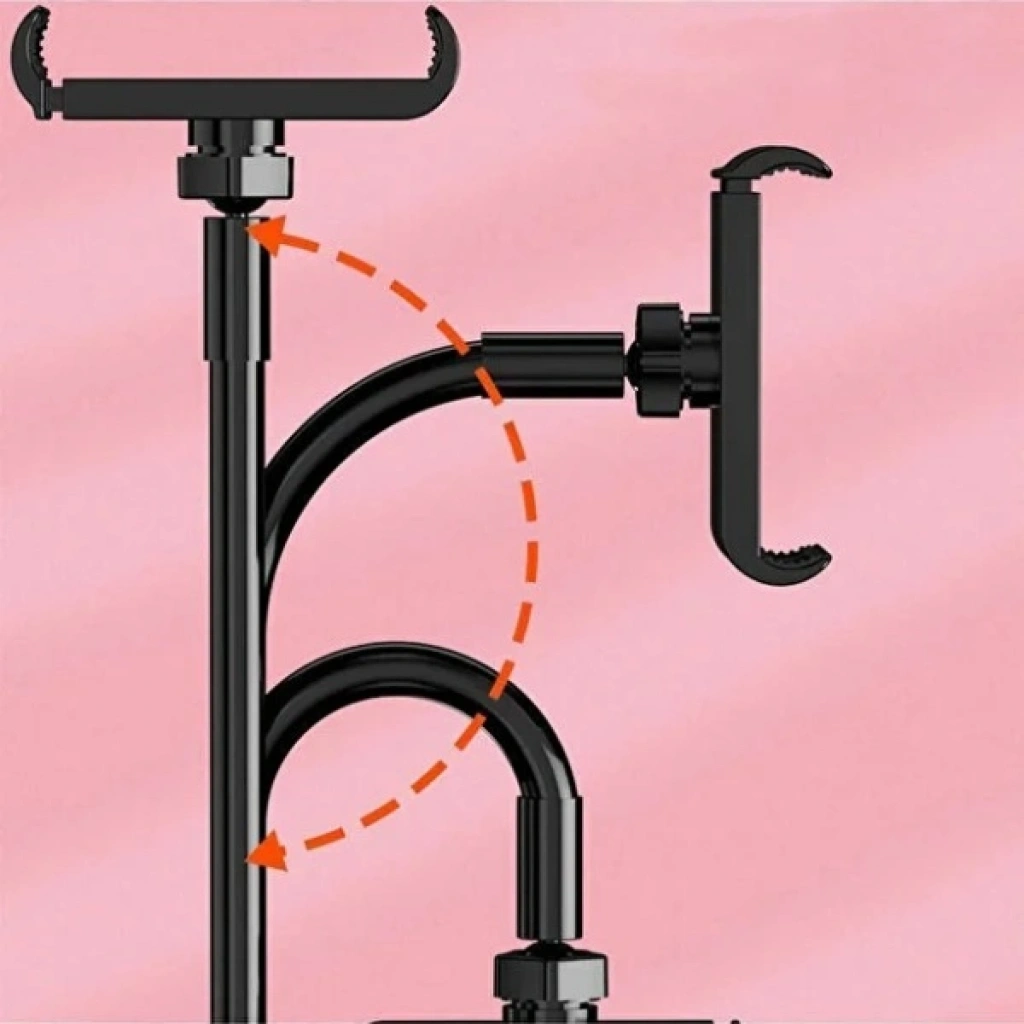 360 DERECE OYNAR MASAÜSTÜ AKROBAT TELEFON TUTUCUÜrün Özellikleri 360 derece oynar masaüstü akrobat telefon tutucu, esnek ve ayarlanabilir yapısı sayesinde telefonunuzu dilediğiniz açıya kolayca sabitlemenize olanak tanır. Akrobat kol tasarımı, kıvrılabilir ve bükülebilir formu ile hem yatay hem dikey kullanımda maksimum konfor sağlar. Masa, sehpa, çalışma masası veya yatak kenarına güçlü kelepçeli yapısı sayesinde sabitlenir ve kullanım sırasında kayma ya da sallanma yapmaz. Dayanıklı metal gövde ve sağlam plastik bağlantı noktaları uzun süreli kullanım için tasarlanmıştır. Telefon tutucu kısmı yaylı mekanizmaya sahiptir ve farklı telefon boyutlarıyla uyumlu olacak şekilde güvenli bir kavrama sunar. Video izleme, canlı yayın, online toplantılar, ders takibi, sosyal medya kullanımı ve navigasyon gibi pek çok kullanım senaryosunda eller serbest kullanım imkânı sağlar. Minimal ve şık tasarımı sayesinde masa üzerinde yer kaplamaz ve çalışma alanınızı düzenli tutmanıza yardımcı olur. Paket İçeriği 1 adet 360 derece oynar masaüstü akrobat telefon tutucu