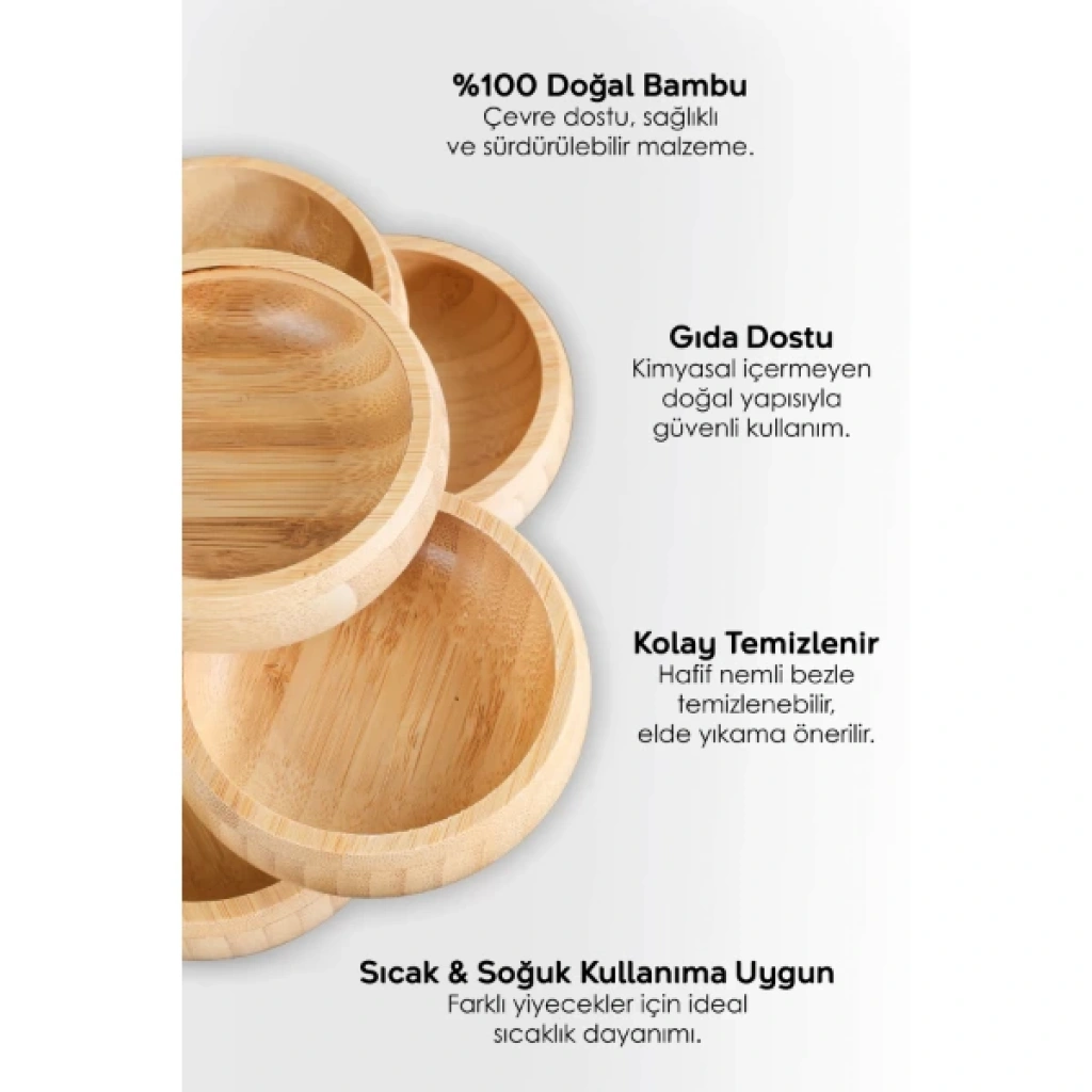3'LÜ ÇEREZLİK SETİÜrün Özellikleri 3'lü Çerezlik Seti, yuvarlak tasarımıyla şık ve pratik bir şekilde çerez, kuru yemiş ve atıştırmalıkları sunmanıza olanak tanır. Setin her bir çerezliği doğal ahşap malzemeden üretilmiş olup, dayanıklı ve çevre dostudur. 9x2x5 cm boyutu sayesinde her masada yer kaplamadan kullanılabilir. Doğal ahşap yapısı, modern ve minimalist dekorasyonlara uyum sağlar Paket İçeriği 1 Adet 3'lü Çerezlik Seti
