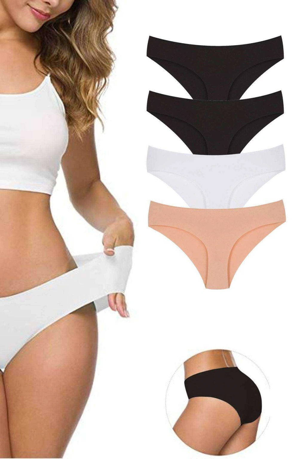 4 Adet Kadın Dikişsiz Lazer Kesim Esnek İz yapmayan Külot Siyah Beyaz Ten 1mm ince ve lazer kesim dikişsiz yapısı sayesinde Pantolon , günlük kıyafet ,gece kıyafetlerinizde iz yapmaz Ofis , gece daveti, seyahat, yolculuk ve dar kıyafetlerde gönül rahatlığıyla kullanabilirsiniz. Hafif ve esnek yapısı sayesinde bedeninizi tam kavrayıp, iç çamaşırı yokmuş hissi vererek iç çamaşırı izi yapmaz ve gün boyu rahat hareket etmenize olanak sunacaktır. Elastik yapısı sayesinde kıvrılma yapmaz. Nefes alan dokusu ile cildinizi sürekli kuru tutar. Siparişleriniz hijyenik olarak tek tek paketlenerek özel poşet içerisinde size ulaştırılacaktır. Sağlıklı günlerde kullanın