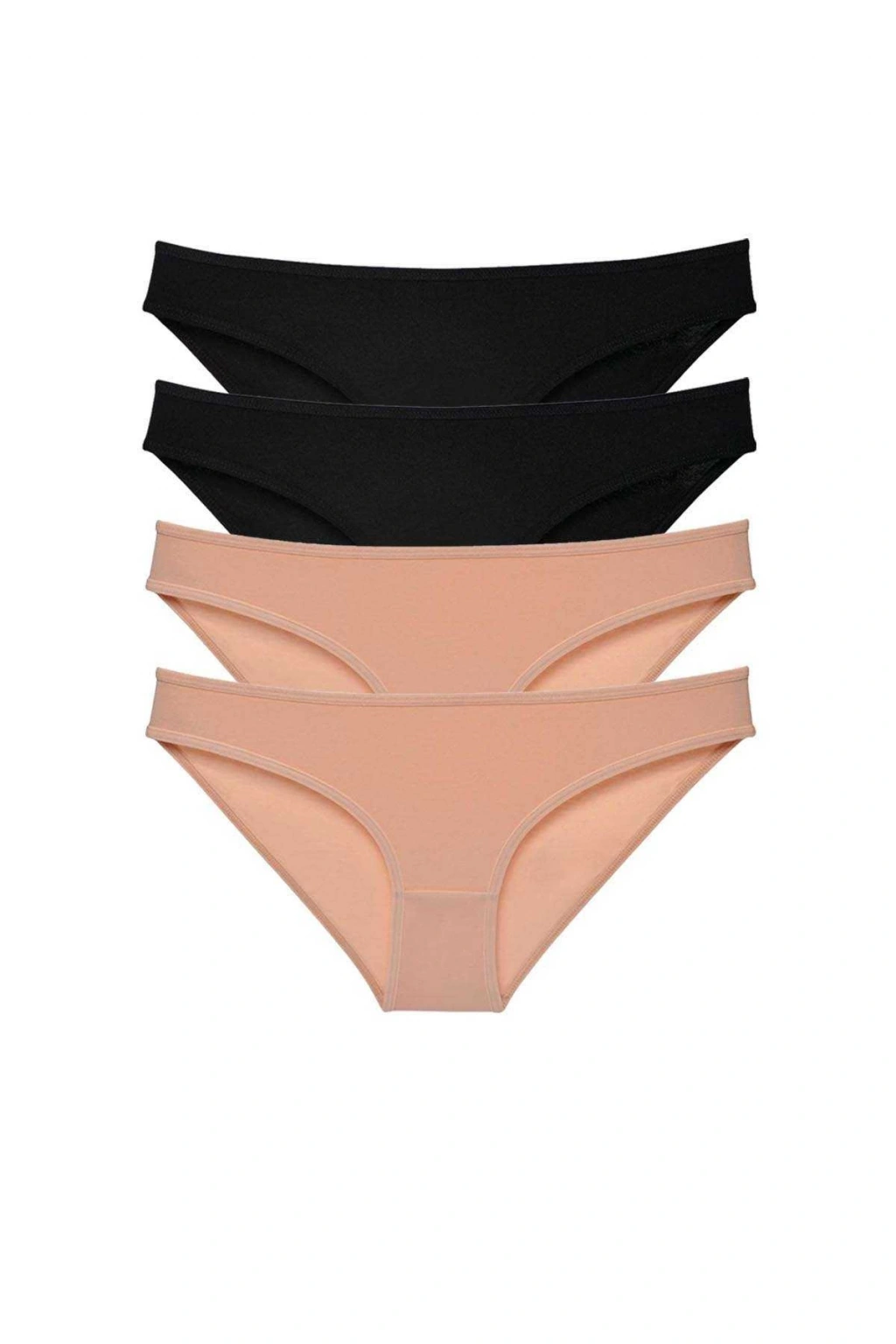 4 Adet Süper Eko Set Likralı Kadın Slip Külot Siyah Ten