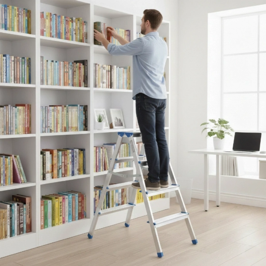 4+4 ÇİFT BASAMAKLI ALÜMİNYUM METAL MERDİVEN Ürün Özellikleri 4+4 Çift Basamaklı Alüminyum Metal Merdiven, hem ev hem de profesyonel kullanım için tasarlanmış dayanıklı ve pratik bir yardımcı ekipmandır. 92 cm yüksekliğe sahip olan bu çift basamaklı merdiven, karşılıklı 4+4 basamak yapısı sayesinde iki taraftan da kullanım imkânı sunar. Hafif yapılı alüminyum gövde sayesinde kolay taşınabilirken sağlam iskeleti ile dengeli bir duruş sağlar. 8 cm baş genişliği bulunan basamak yapısı, güvenli ve rahat bir basış alanı oluşturur. Katlanabilir tasarımı sayesinde kullanılmadığında yer kaplamaz ve kolayca muhafaza edilebilir. Kaymayı azaltmaya yardımcı ayak detayları ile güvenli kullanım sunan alüminyum metal merdiven, boya, temizlik, montaj ve günlük işler için ideal bir çözümdür. Ürün Teknik Özellikleri Özellik Açıklama Ürün Adı 4+4 Çift Basamaklı Alüminyum Metal Merdiven Yükseklik 92 cm Basamak Yapısı 4+4 çift taraflı kullanım Baş Genişliği 8 cm Malzeme Alüminyum metal Paket İçeriği 1 adet 4+4 Çift Basamaklı Alüminyum Metal Merdiven