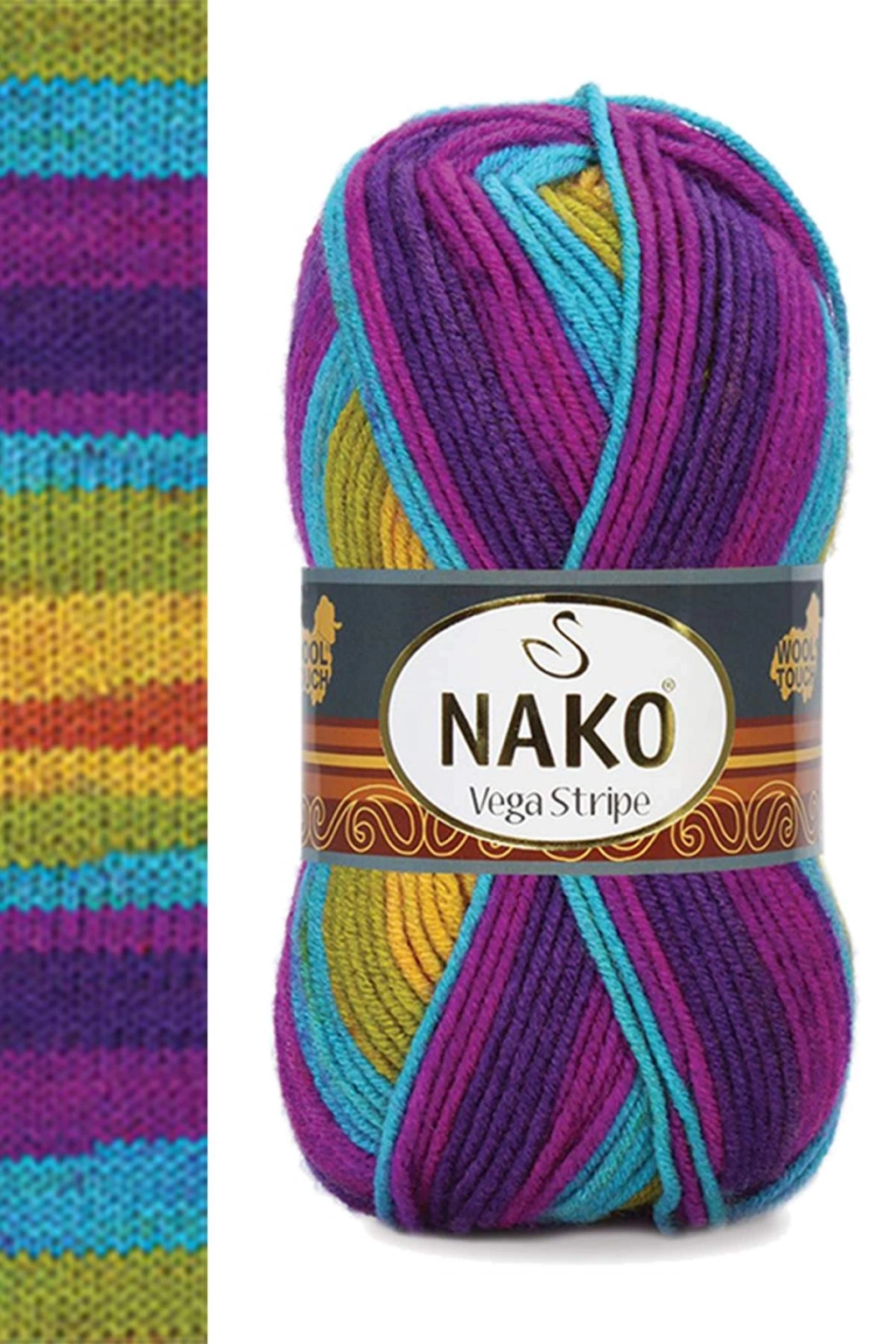 Paket içeriği: 5 Adet Vega Stripe Premium Akrilik El Örgü İpi Yünü No: 82410