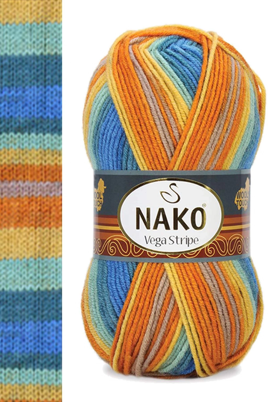Paket içeriği: 5 Adet Vega Stripe Premium Akrilik El Örgü İpi Yünü No: 82421