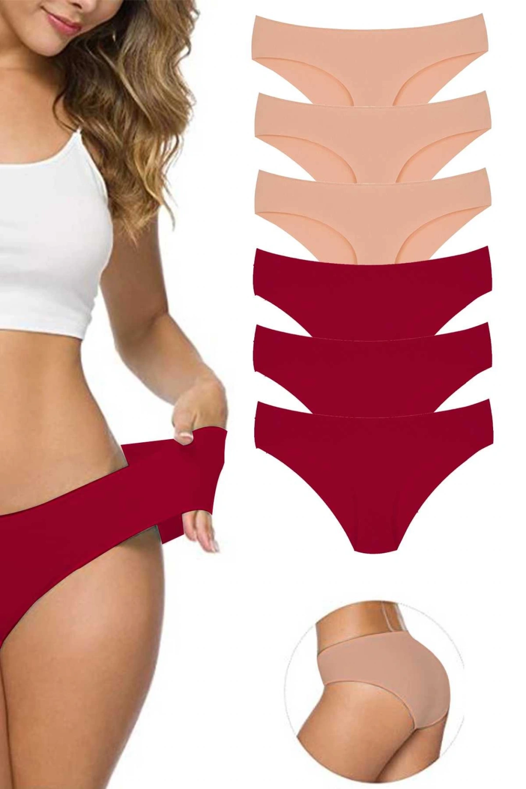 6 Adet Kadın Dikişsiz Lazer Kesim Esnek İz yapmayan Külot Ten Bordo 1mm ince ve lazer kesim dikişsiz yapısı sayesinde Pantolon , günlük kıyafet ,gece kıyafetlerinizde iz yapmaz Ofis , gece daveti, seyahat, yolculuk ve dar kıyafetlerde gönül rahatlığıyla kullanabilirsiniz. Hafif ve esnek yapısı sayesinde bedeninizi tam kavrayıp, iç çamaşırı yokmuş hissi vererek iç çamaşırı izi yapmaz ve gün boyu rahat hareket etmenize olanak sunacaktır. Elastik yapısı sayesinde kıvrılma yapmaz. Nefes alan dokusu ile cildinizi sürekli kuru tutar. Siparişleriniz hijyenik olarak tek tek paketlenerek özel poşet içerisinde size ulaştırılacaktır. Sağlıklı günlerde kullanın