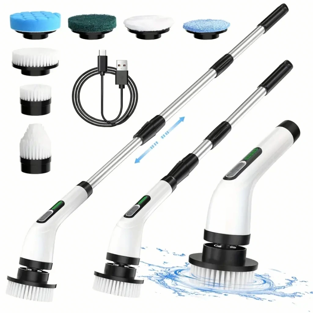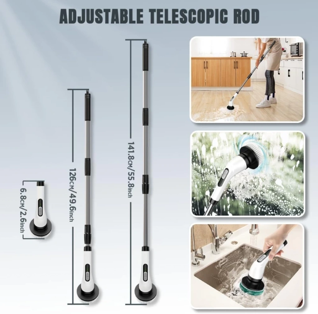 7 İN 1 KABLOSUZ ELEKTRİKLİ TEMİZLİK FIRÇASI SETİÜrün Özellikleri 7 in 1 kablosuz elektrikli temizlik fırçası seti, ev ve araç temizliğinde maksimum konfor sunar. Uzatılabilir teleskopik sapı sayesinde 68 cm’den 141 cm’ye kadar ayarlanabilir ve yüksek veya ulaşılması zor alanlarda kolay temizlik sağlar. Güçlü döner motoru ile sabun, kir ve yağ kalıntılarını hızlı bir şekilde temizler. Farklı yüzeyler için özel olarak tasarlanmış 7 adet fırça ve sünger başlık içerir; lavabo, banyo, fayans, mutfak tezgahı, cam, araba yüzeyleri ve zeminlerde mükemmel sonuç verir. Ergonomik ve suya dayanıklı gövdesiyle uzun süreli kullanım sağlar. Kablosuz ve şarjlı yapısı sayesinde pratik kullanım sunar, kablo karmaşası olmadan temizlik yapılabilir. Şarj edilebilir bataryası ile tek şarjda uzun süre kesintisiz temizlik imkânı sağlar. Paket İçeriği 1 adet teleskopik saplı elektrikli fırça 7 adet değiştirilebilir temizlik başlığı 1 adet USB şarj kablosu