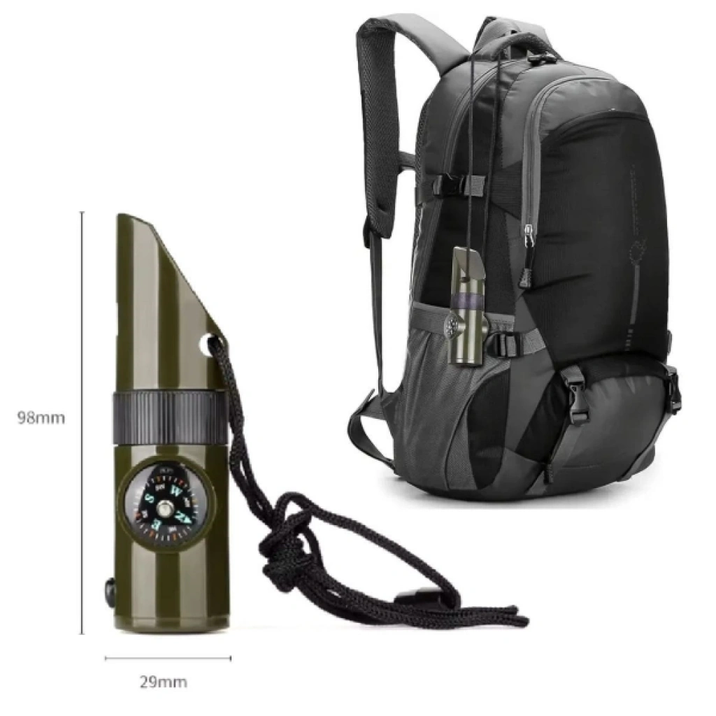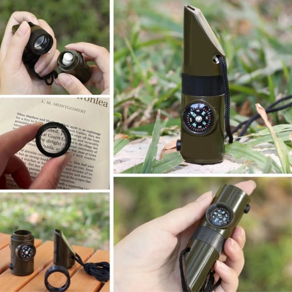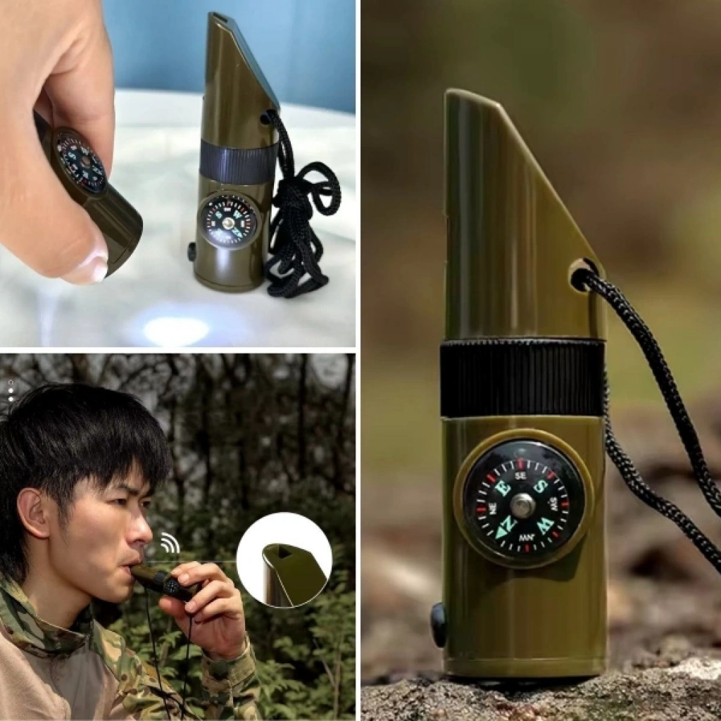 7’Sİ 1 ARADA ACİL DURUM DÜDÜĞÜÜrün Özellikleri 7’si 1 arada acil durum düdüğü, doğa yürüyüşleri, kamp, avcılık ve acil durum senaryoları için çok fonksiyonlu ve pratik bir yardımcı olarak tasarlanmıştır. Entegre el feneri düşük ışık koşullarında ve gece yolculuklarında aydınlatma sağlarken, dahili termometre bulunduğunuz ortamın sıcaklığını anlık olarak takip etmenize yardımcı olur. Hassas pusulası yön bulmayı kolaylaştırarak kaybolma riskini azaltır. Büyüteç özelliği küçük detayları net şekilde görmenizi sağlarken, gövde içinde yer alan depolama bölmesi kibrit, iğne veya küçük acil durum malzemeleri için saklama alanı sunar. Güçlü düdük bölümü acil durumlarda yüksek sesle sinyal vererek çevredeki dikkatleri üzerinize çeker. Kompakt, hafif ve dayanıklı yapısı sayesinde çantada, boyunda veya cebinizde rahatlıkla taşınabilir. Kamp, trekking, dağcılık, izcilik ve günlük outdoor aktivitelerinde güvenlik ve pratikliği bir arada sunar. Paket İçeriği 1 adet 7’si 1 arada acil durum düdüğü