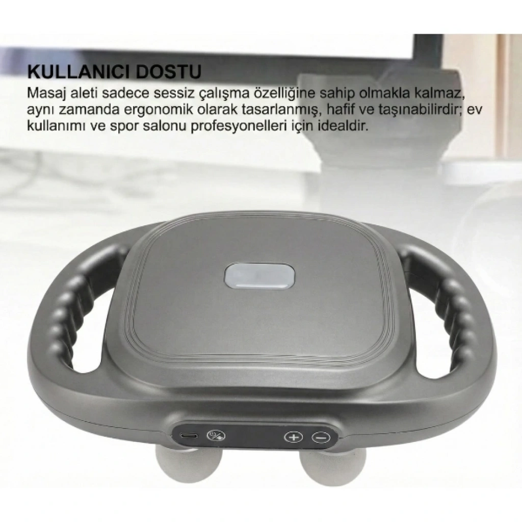 8 BAŞLIKLI ŞARJLI ISITMALI MASAJ ALETİÜrün Özellikleri 8 başlıklı şarjlı ısıtmalı masaj aleti, gün içinde oluşan kas gerginliğini azaltmaya ve rahatlama hissini artırmaya yardımcı olmak üzere tasarlanmıştır. Boyun, sırt, omuz, bel, bacak ve ayak gibi farklı bölgelerde kullanılabilen değiştirilebilir başlıkları sayesinde hedefli masaj imkânı sunar. Sıcaklık desteği, masaj etkisini güçlendirerek kasların gevşemesine katkı sağlar ve özellikle yoğun geçen günlerin ardından konforlu bir kullanım deneyimi sunar. Güçlü motoru ve ayarlanabilir hız/şiddet kademeleri ile masaj yoğunluğunu kişisel ihtiyaca göre ayarlama olanağı verir. Şarjlı bataryası sayesinde kablo derdi olmadan evde, ofiste ya da dilediğiniz her yerde pratik şekilde kullanılabilir. Ergonomik ve kompakt gövdesi, kaymaz tutuş yüzeyi ve dengeli ağırlık dağılımı ile uzun süreli kullanımlarda bile konfor sağlar. Sessiz çalışma yapısı, günün her saatinde rahatsızlık vermeden kullanım imkânı sunar. Antrenman sonrası sporcular, aktif yaşam sürenler ve masa başında uzun süre oturanlar için günlük bakım rutinine kolayca entegre edilebilecek fonksiyonel bir masaj çözümüdür. Bu ürün bir sağlık cihazı değildir; tıbbi teşhis veya tedavinin yerine geçmez. Hamilelik, kalp pili, açık yara gibi durumlarda kullanmadan önce doktorunuza danışmanız önerilir. Paket İçeriği 1 adet 8 Başlıklı Şarjlı Isıtmalı Masaj Aleti