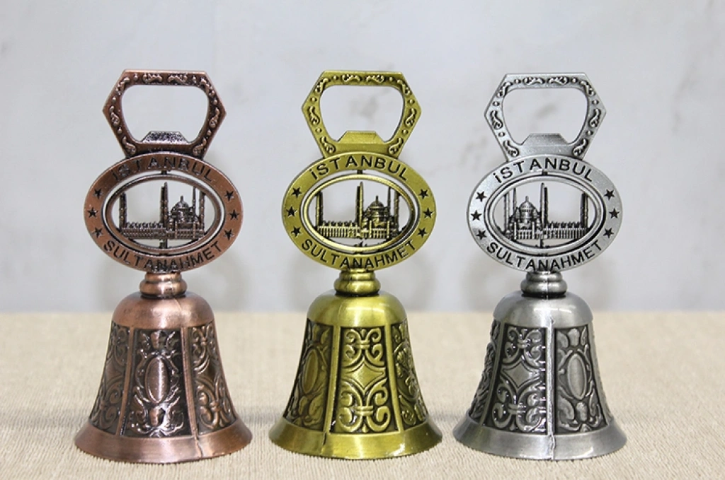 AÇACAKLI SULTANAHMET TEMALI EL ÇANI Ürün Özellikleri Açacaklı Sultanahmet Temalı El Çanı, dekoratif görünümü ve işlevsel tasarımıyla hem koleksiyonluk hem de günlük kullanım için tercih edilebilecek özel bir üründür. 10,5 cm boyutundaki kompakt yapısı sayesinde masaüstü, raf ve vitrin dekorasyonunda şık bir tamamlayıcı olarak kullanılabilir. Üzerinde yer alan Sultanahmet temalı detaylar ürüne turistik ve estetik bir karakter kazandırır. Alt kısmında bulunan açacak fonksiyonu sayesinde yalnızca dekoratif değil, aynı zamanda pratik bir kullanım da sunar. Metal gövde yapısı sağlam ve dengeli bir duruş sağlarken klasik tasarım çizgisi dikkat çeker. Gönderim sırasında görselde yer alan renklerden biri karışık olarak gönderilmektedir. Hem süs hem kullanım avantajı sunan bir açacaklı el çanı modelidir. Şehir simgesi tasarımıyla öne çıkan dekoratif bir Sultanahmet temalı metal çan alternatifidir. Ürün Teknik Özellikleri Özellik Açıklama Ürün Adı Açacaklı Sultanahmet Temalı El Çanı Boyut 10,5 cm Malzeme Metal Özellik Açacak Fonksiyonlu Tema Sultanahmet Tasarımı Renk Görseldeki Renklerden Biri Karışık Olarak Gönderilir Kullanım Alanı Dekoratif ve Açacak Amaçlı Kullanım Paket İçeriği 1 Adet Açacaklı Sultanahmet Temalı El Çanı