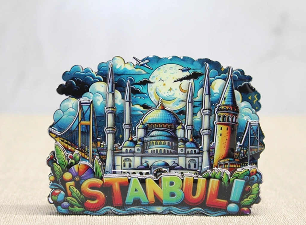 AHŞAP İSTANBUL TEMALI MAGNET - MODEL 2 Ürün Özellikleri Ahşap İstanbul Temalı Magnet - Model 2, İstanbul silüetini ve simgesel yapı detaylarını katmanlı tasarım formuyla bir araya getiren dekoratif bir hatıra ürünüdür. 9,5x9 cm ölçüsündeki kompakt yapısı sayesinde buzdolabı ve metal yüzeylerde dengeli ve dikkat çekici bir görünüm sunar. Ahşap malzemeden üretilmiş gövdesi doğal bir doku oluştururken, renkli şehir figürleri ve “Istanbul” yazı detayı ürüne turistik ve koleksiyonluk bir karakter kazandırır. Katmanlı kesim yapısı üç boyutlu bir görünüm etkisi oluşturarak klasik düz magnet modellerine göre daha estetik bir duruş sağlar. Ev ve ofis ortamlarında dekoratif kullanım için uygundur. Şehir konseptiyle öne çıkan bir ahşap İstanbul temalı magnet modelidir. Renkli ve detaylı tasarımıyla dikkat çeken bir dekoratif buzdolabı magneti alternatifidir. Ürün Teknik Özellikleri Özellik Açıklama Ürün Adı Ahşap İstanbul Temalı Magnet - Model 2 Boyut 9,5 x 9 cm Malzeme Ahşap Tasarım Katmanlı İstanbul Silüeti ve Yazı Detayı Kullanım Alanı Buzdolabı ve Metal Yüzeyler Paket İçeriği 1 Adet Ahşap İstanbul Temalı Magnet - Model 2