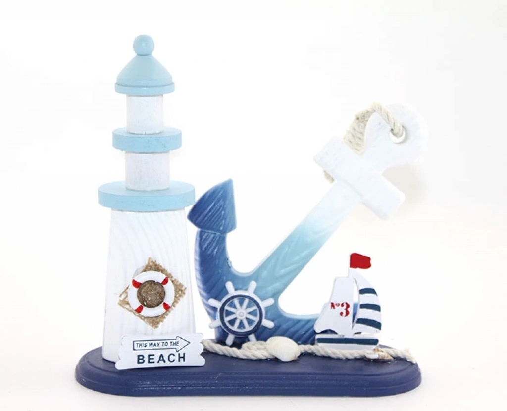 • AHŞAP MARİN ÇAPALI DENİZ FENERİÜrün ÖzellikleriAhşap marin çapalı deniz feneri, deniz temalı dekorasyonun vazgeçilmez bir parçasıdır. 20x20 cm boyutlarında olan bu şık obje, beyaz ve mavi renk tonlarıyla estetik bir görünüm sunar. Çapa, deniz feneri