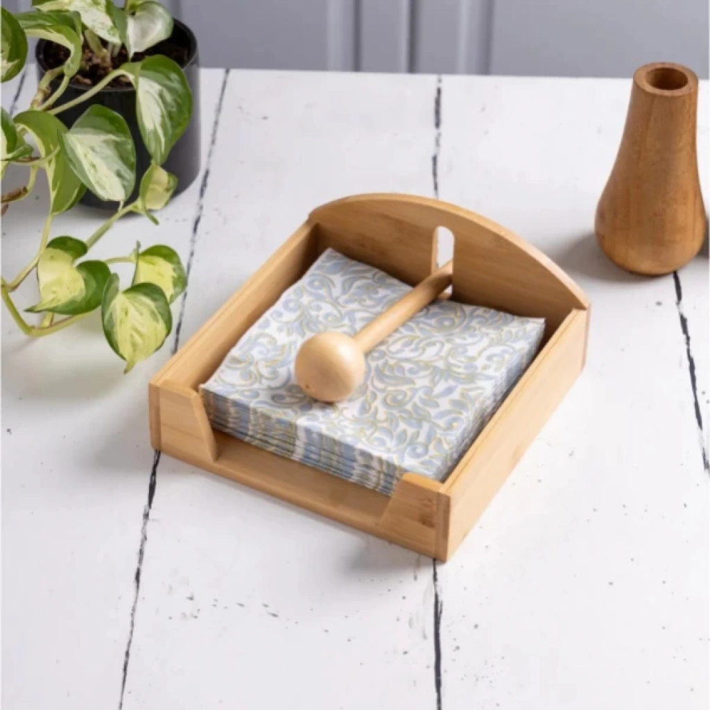 AHŞAP PEÇETELİKÜrün Özellikleri Doğal ahşap malzemeden üretilmiş bu şık peçetelik, masalarınıza zarif bir dokunuş katacaktır. Ahşap malzeme, dayanıklı ve uzun ömürlüdür. Şık tasarımı ile hem dekoratif hem de işlevsel bir üründür. Üzerinde yer alan küçük ahşap tutacak, peçetelerin düzenli bir şekilde kullanılmasını sağlar. Bu peçetelik, özellikle evde, restoranlarda veya ofislerde kullanıma uygundur. Paket İçeriği 1 Adet Ahşap Peçetelik