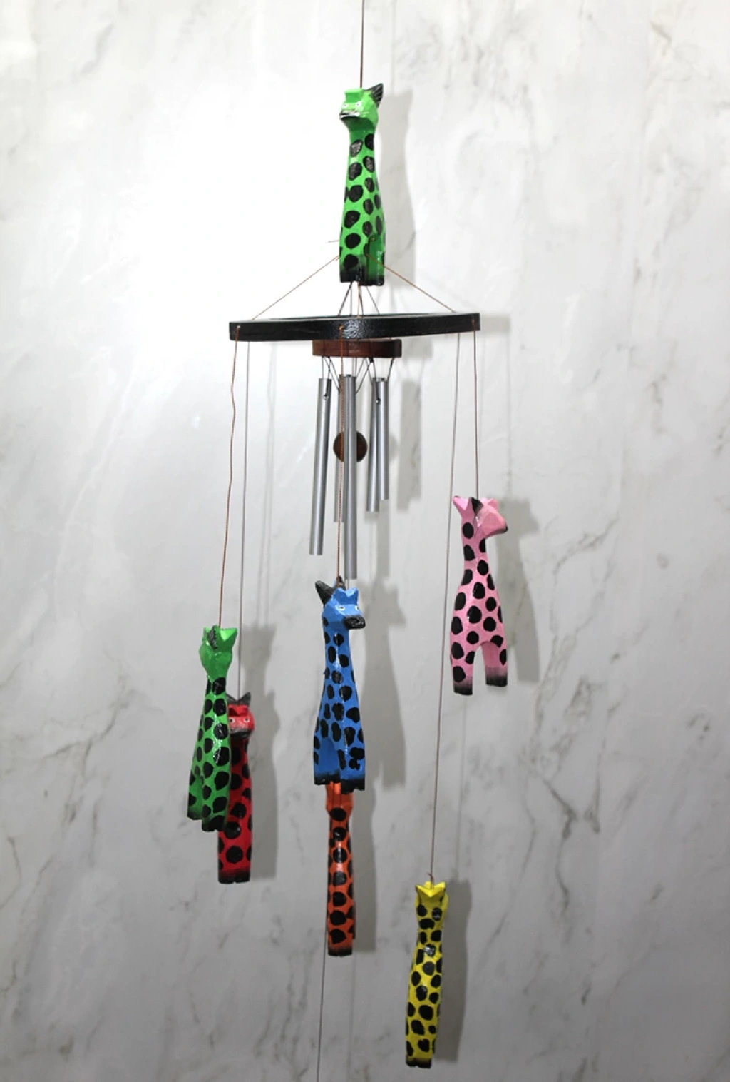 AHŞAP ZÜRAFALI RÜZGAR ÇANIÜrün ÖzellikleriAhşap zürafalı rüzgar çanı, doğal ve şık tasarımıyla dekorasyonunuza huzurlu bir atmosfer katar. Ahşap malzemeden üretilmiş olup, zürafa figürü ile estetik bir dokunuş sunar. Rüzgarın etkisiyle yumuşak ve dingin bir ses çıkararak rahatlatıcı bir ortam oluşturur. Balkon, teras, bahçe, pencere önü veya iç mekân dekorasyonlarında kullanılabilir. El yapımı tasarımı sayesinde her biri benzersizdir ve doğa ile uyumlu bir görünüm sunar. Hem şık bir dekoratif obje hem de huzur veren bir aksesuar olarak tercih edilebilir.Paket İçeriği1 adet Ahşap Zürafalı Rüzgar Çanı