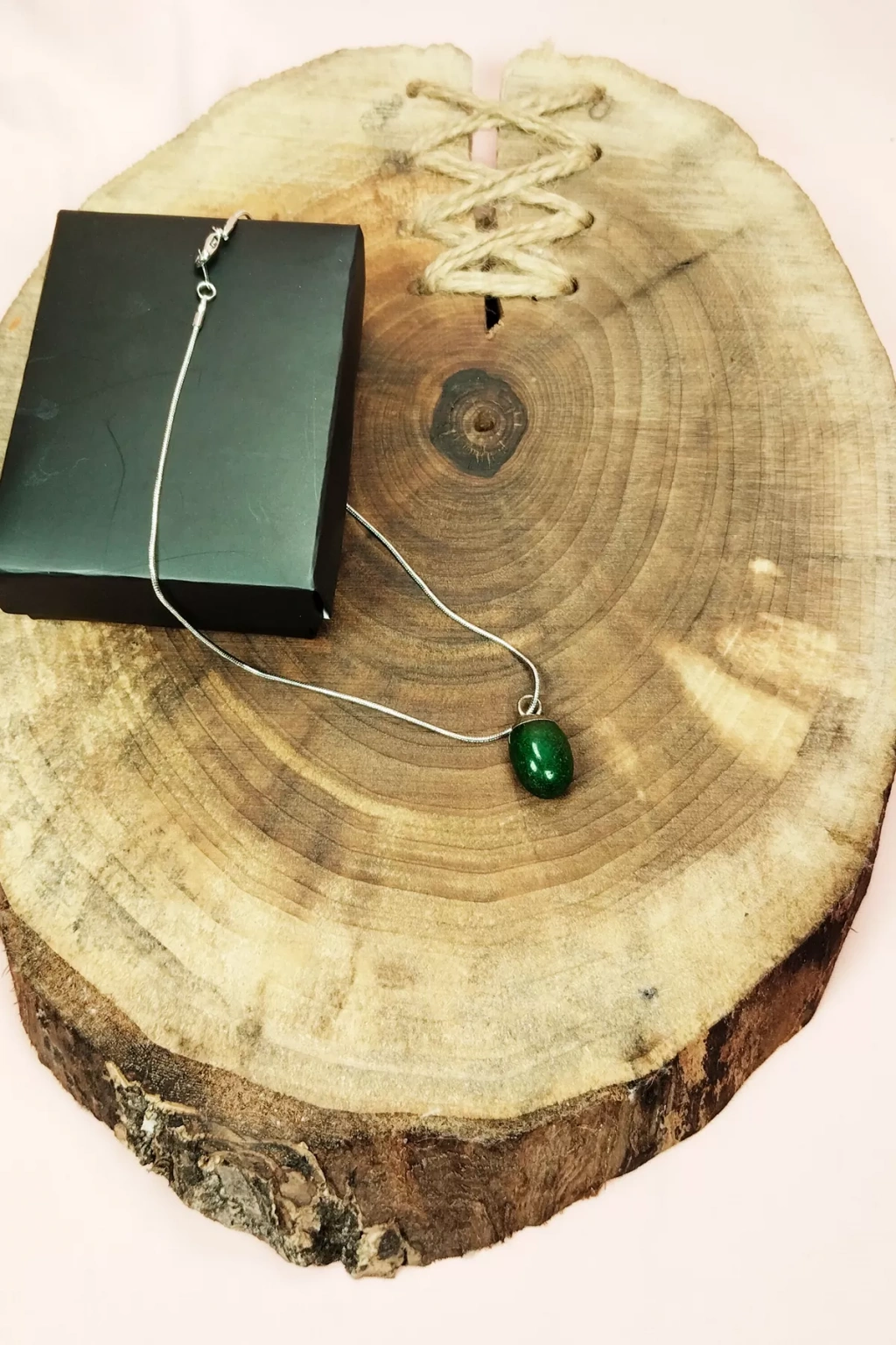 Aventurin Doğal Taşı Zincirli El Yapımı Kolye Uç: 2 cm Zincir: 20 cm Kutulu