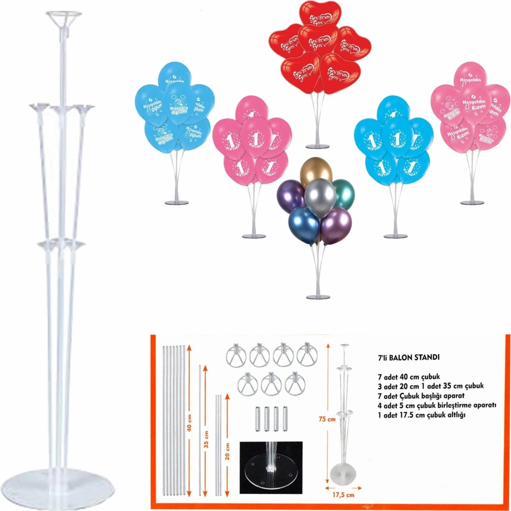 BALON STANDI Ürün Özellikleri Partilerin vazgeçilmez ürünü balon standı Malzeme : Plastik Demonte olarak kargolanmaktadır. 5 dakika içerisinde rahatlıkla kurulumu yapılabilmektedir. Balon standı uzunlu kısalı 7 çubuğa sahiptir. Balon standına 7 adet