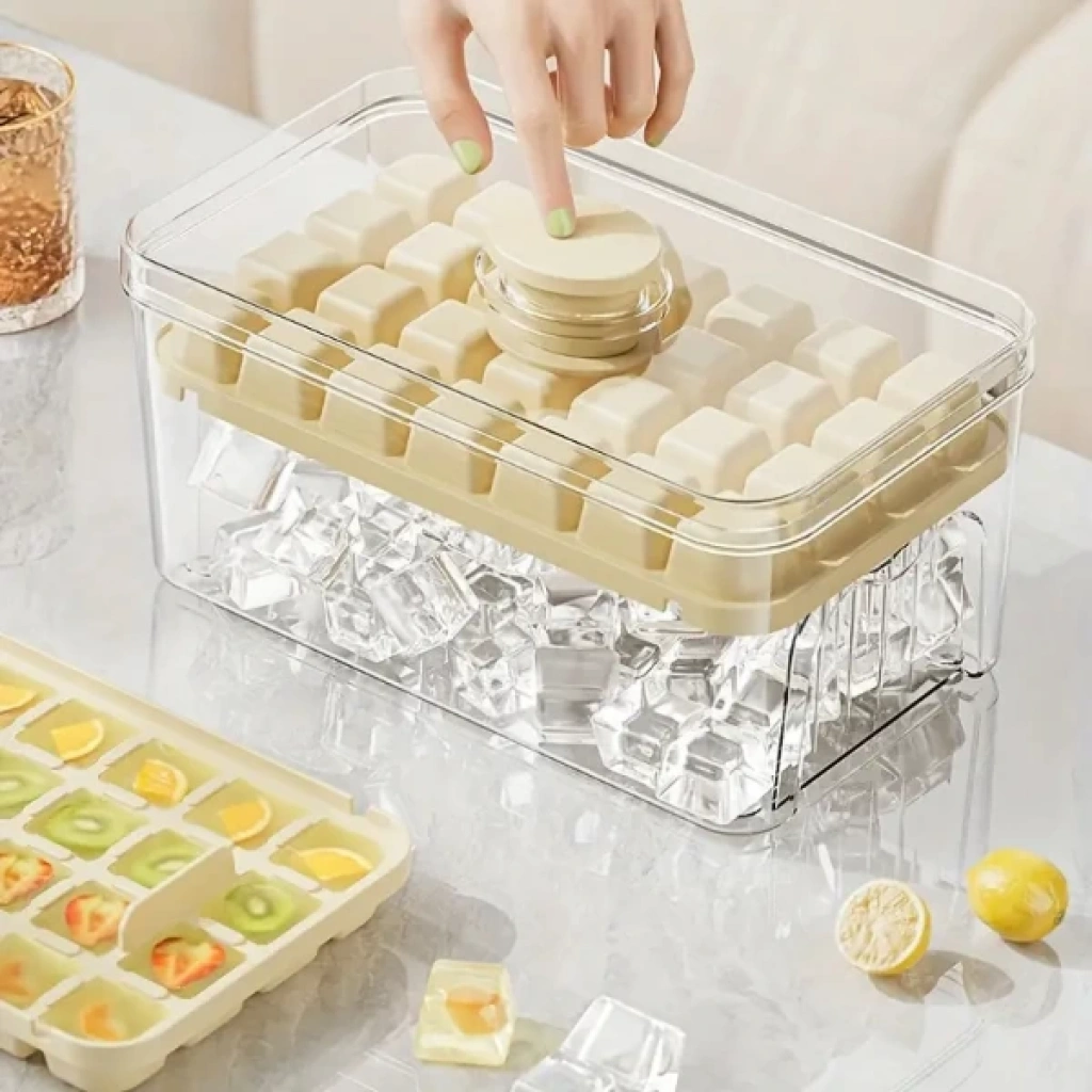 BASMALI HAZNELİ BUZLUKÜrün Özellikleri Basmalı hazneli buzluk, mutfakta kullanım kolaylığı sağlamak için özel olarak tasarlanmış pratik bir üründür. Dayanıklı ve BPA içermeyen kaliteli plastik malzemeden üretilmiş olup, gıda ile temasa uygundur. Ürün iki ayrı kalıptan oluşur ve tek seferde toplamda 56 adet buz küpü hazırlama kapasitesine sahiptir. Şeffaf kapaklı tasarımı sayesinde buzların durumu kolayca kontrol edilebilir. Üzerinde yer alan basmalı mekanizma sayesinde buz küplerini elinizi ıslatmadan ve kırma işlemiyle uğraşmadan zahmetsizce çıkarmanıza olanak tanır. Buzları temiz ve hijyenik bir şekilde saklamanız için özel haznesi mevcuttur. Kompakt boyutu sayesinde buzdolabında fazla yer kaplamaz ve kolay temizlenebilir yapısıyla pratik bir kullanım sunar.Ürün ölçüleri 19 cm uzunluk, 11,6 cm genişlik ve 8 cm yükseklikten oluşmaktadır. Fonksiyonel yapısı ile mutfak düzeninizi bozmadan, buz hazırlama sürecinizi hızlı ve hijyenik hale getirir. Paket İçeriği 1 adet basmalı hazneli buzluk