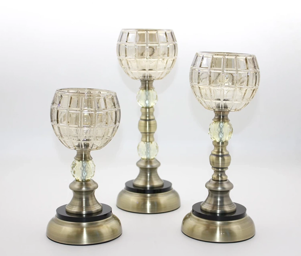 CAM 3'LÜ ŞAMDAN Ürün Özellikleri Cam 3'lü Şamdan seti, zarif tasarımı ve şık cam detaylarıyla ev dekorasyonunuza zarafet katacak bir üründür. 33 cm, 27 cm ve 22 cm boyutlarında üç farklı yükseklikte şamdandan oluşan bu set, mum ışığının ambiyansını artırarak dekoratif bir görünüm sunar. Metalik detaylarla tamamlanan şamdanlar, klasik ve modern dekorasyonlarla uyum sağlar. Salon, yemek masası, yatak odası veya özel günlerde sofralarınızda şıklık yaratmak için idealdir. Paket İçeriği 1 Adet 33 cm Şamdan 1 Adet 27 cm Şamdan 1 Adet 22 cm Şamdan