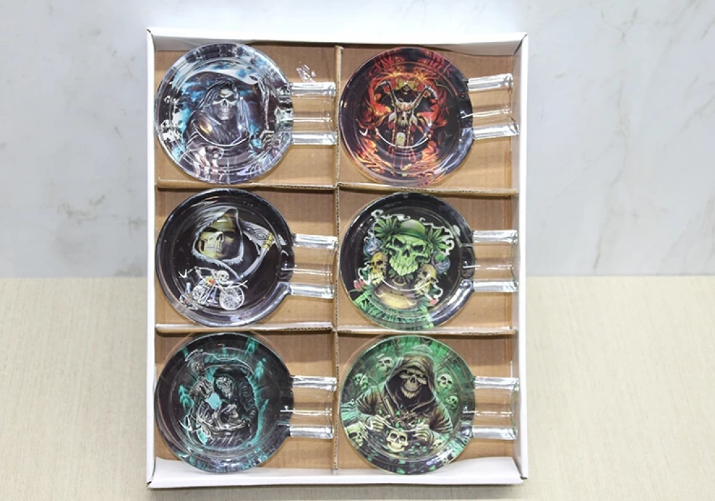CAM PURO KÜLLÜK MODEL 4 Ürün Özellikleri Cam Puro Küllük Model 4, yuvarlak şekli ve hayalet iskelet temalı tasarımıyla dikkat çeker. Yüksek kaliteli cam malzemeden üretilmiş olan bu küllük, dayanıklı yapısı ile uzun süre kullanım sağlar. Hayalet iskelet motifleriyle süslenmiş, dekoratif ve şık bir tasarıma sahiptir. Hem estetik hem de fonksiyonel olan bu obje, puro severler için vazgeçilmez bir aksesuar olarak öne çıkar. Paket İçeriği 1 Adet Cam Puro Küllük Model 4
