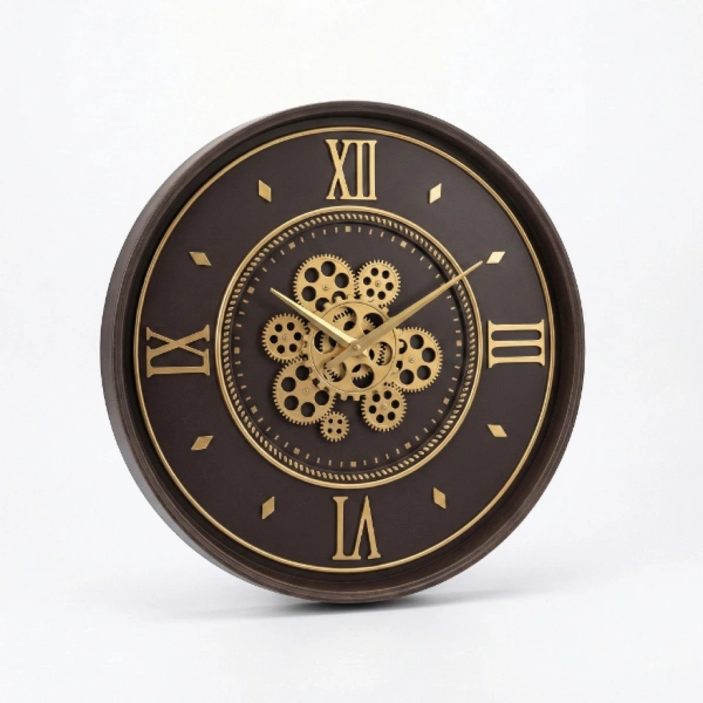 ÇARKLI DUVAR SAATİ 55 CMÜrün Özellikleri55 cm çapındaki çarklı duvar saati, büyük boy ölçüsü ve iç kısmında yer alan detaylı mekanik çark tasarımıyla bulunduğu ortamda güçlü ve dikkat çekici bir dekoratif etki oluşturur. Görselde de net şekilde görülen açık mekanizmalı çark detayı, saate endüstriyel ve vintage tarzı bir karakter kazandırırken, Roma rakamlı kadran yapısı klasik estetik anlayışı modern çizgilerle birleştirir. Altın tonlu çark ve rakam detayları, koyu zeminle kontrast oluşturarak saatin uzaktan bile rahatça okunmasını sağlar. Geniş kadranı sayesinde salon, oturma odası, ofis, kafe, restoran ve loft tarzı mekânlarda dekorasyonun odak noktası haline gelir. Dengeli çalışan saat mekanizması sessiz bir kullanım sunarak yaşam alanlarında konfor sağlar. Sağlam gövde yapısı ve kaliteli malzeme hissi uzun ömürlü kullanım avantajı sunarken, duvara kolayca asılabilen tasarımı ile pratik kurulum imkânı sağlar. Dekorasyonda sıradan saatlerden farklı, prestijli ve karakter sahibi bir ürün arayan kullanıcılar için hem fonksiyonel hem de estetik açıdan güçlü bir tercihtir. Paket İçeriği1 adet Çarklı Duvar Saati 55 cm