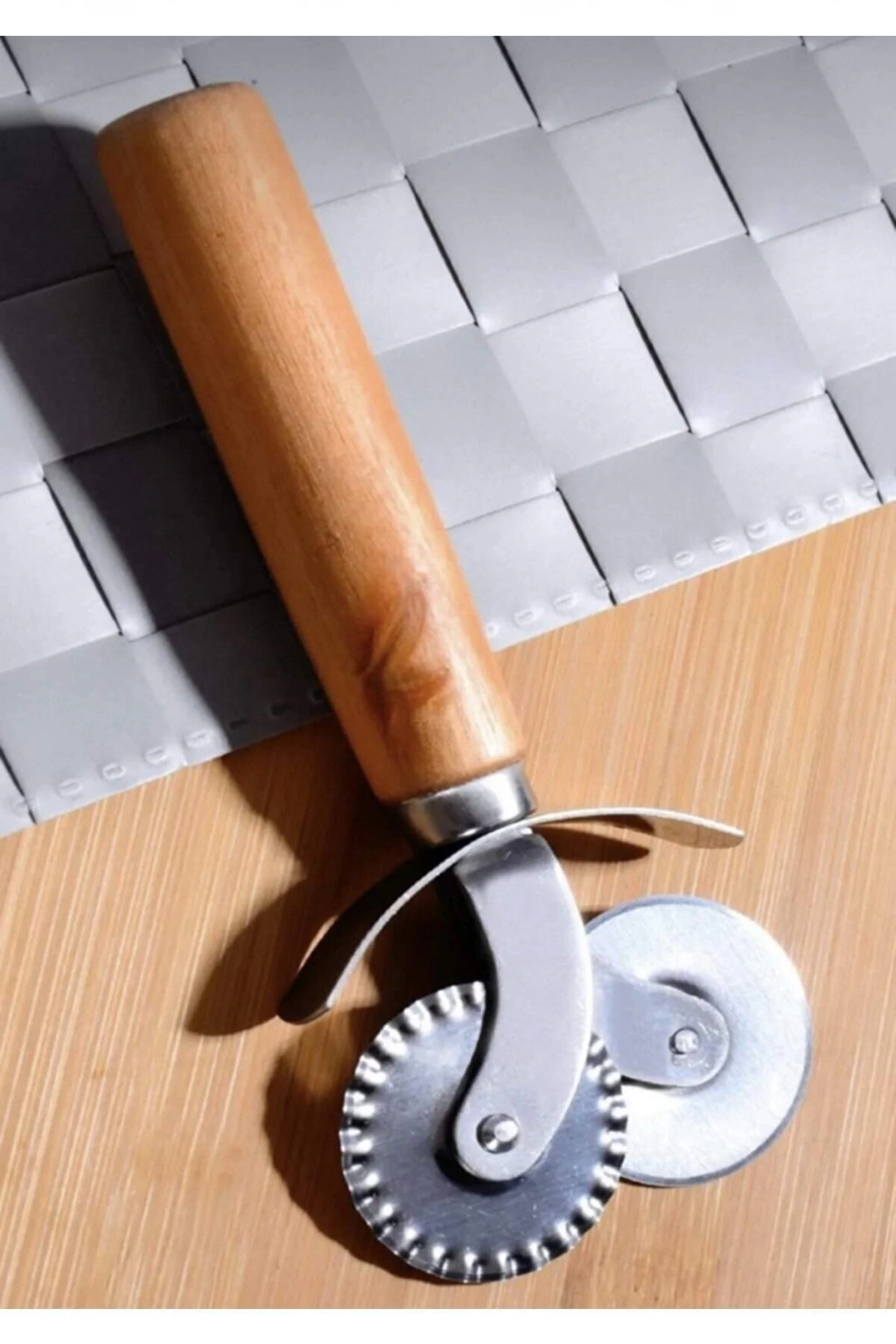 Çift Başlıklı Ahşap Saplı Pizza Kesici Hamur Kesici Çİft Başlı Metal Pizza Kesici ve Hamur Ruleti Pizza , Tart vb lezzet hazırlarken el aletlerinden pizza kesici ve hamur ruleti adı verilen, iki küçük el aletini kullanırsınız. Bu el aletleri, mutfaklarımızda olmazlarsa olmazlarındandır. Hamur kesici veya hamur ruletı normal bıçaklardan daha seri ve hatasız keserler. 1.Pizza Kesici: Ahşap yuva arasına yataklanmış, kesici ağızlı, döner metal bir disk. Alet sapından tutulduğu vakit, el kaymasını önlemek için muhafazası vardır. Asıl görevi pizza kesmek olsa da, çeşitli börek, gözleme, yufka kesimleri için oldukça kullanışlıdır. 2.Hamur Ruleti: Yufkalarınızı kesme işlemlerinde hiç zorlanmazsınız. Bu hamur ruleti, hamur yufkayı tek hareketle keser ve birleştirir. Özellikle, yufkaların birbiri üzerine katlanarak yapılan böreklerde çok başarılıdır. Örneğin : Çiy börek uçlarının düzgün şekil için kesimi ve birleştirilmesi. Ayrıca, çift yufka usülü kullanılarak yapılan mantıların birleştirilmesi gibi. Biz her iki ürünü birleştirdik tek alete sığdırdık. Ahşap Yuvaya hamur kesici ve hamur ruletı yerleştirerek tek aletle 2 ayrı aletin yaptığı işi yapabileceksiniz Mutfağınızda kolaylıklar dileği ile. Paket İçeriği : 1 Adet Çİft Başlı Metal Pizza Kesici ve Hamur Ruleti