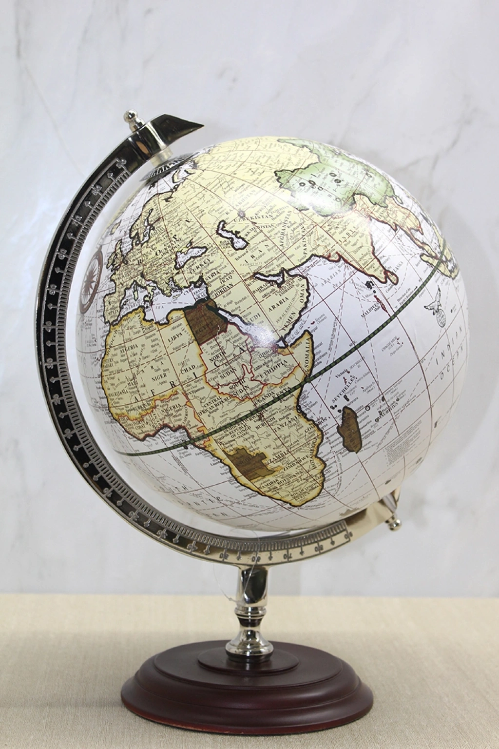 DEKORATİF MASAÜSTÜ DÜNYA KÜRE - MODEL 15 Ürün Özellikleri Dekoratif Masaüstü Dünya Küre - Model 15, açık krem ve bej tonlarının hâkim olduğu klasik atlas tasarımı ile zamansız bir dekoratif şıklık sunar. 40x30 cm ölçüsü sayesinde büyük boy formda tasarlanmış olup masa üzerinde güçlü ve dengeli bir duruş sergiler. Açık zemin üzerine işlenmiş kıta detayları, daha aydınlık ve ferah bir atlas görünümü oluştururken metal meridyen halkası ve koyu ahşap görünümlü kaide tasarımı ürüne klasik bir karakter kazandırır. büyük boy masaüstü dünya küre arayan kullanıcılar için ideal ölçüye sahip olan bu model, yönetici masası, ofis konsolu, salon sehpası ya da geniş kitaplık raflarında prestijli bir odak noktası oluşturur. Hem klasik hem modern dekorasyon stilleriyle uyum sağlayabilen dekoratif atlas dünya küresi, bulunduğu ortamda entelektüel ve sofistike bir atmosfer yaratmak isteyenler için estetik bir tercihtir. Sağlam stand yapısı sayesinde dengeli kullanım sunar ve uzun süreli dekoratif kullanım için uygundur. Ürün Teknik Özellikleri Özellik Açıklama Ürün Adı Dekoratif Masaüstü Dünya Küre - Model 15 Boyut 40 x 30 cm Kullanım Türü Masaüstü Tasarım Açık Krem Tonlu Atlas Kullanım Alanı Ev, Ofis, Yönetici Masası Paket İçeriği 1 Adet Dekoratif Masaüstü Dünya Küre - Model 15