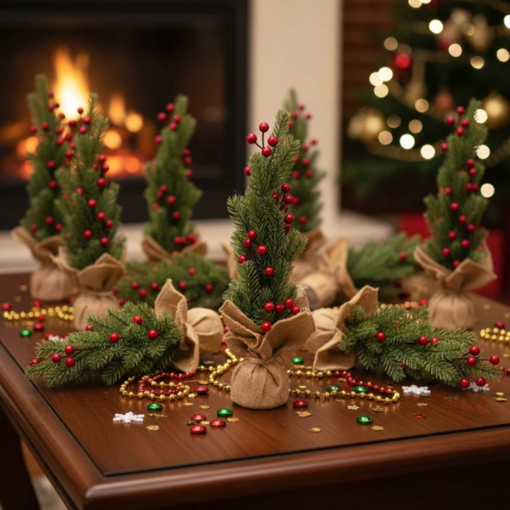 DEKORATİF MİNİ YAPAY KOKİNA SÜSÜrün Özellikleri Dekoratif mini yapay kokina, 45 cm boyutuyla masa üstü dekorasyonlarda ve küçük alanlarda şık bir yeni yıl atmosferi oluşturmak için ideal bir üründür. Canlı yeşil çam dallarıyla birlikte tasarlanan kırmızı kokina detayları, alt kısmındaki keten kaplı saksı görünümü ise ağaca rustik ve sıcak bir tarz kazandırır. Dayanıklı yapay malzemeden üretildiği için her yıl tekrar kullanılabilir, şeklini uzun süre korur ve dökülme yapmaz. Ev, ofis, vitrin, kafe veya hediye amaçlı kullanımlarda dekoratif bir tamamlayıcı olarak öne çıkar. Paket İçeriği 1 Adet Dekoratif Mini Yapay Kokina Süs
