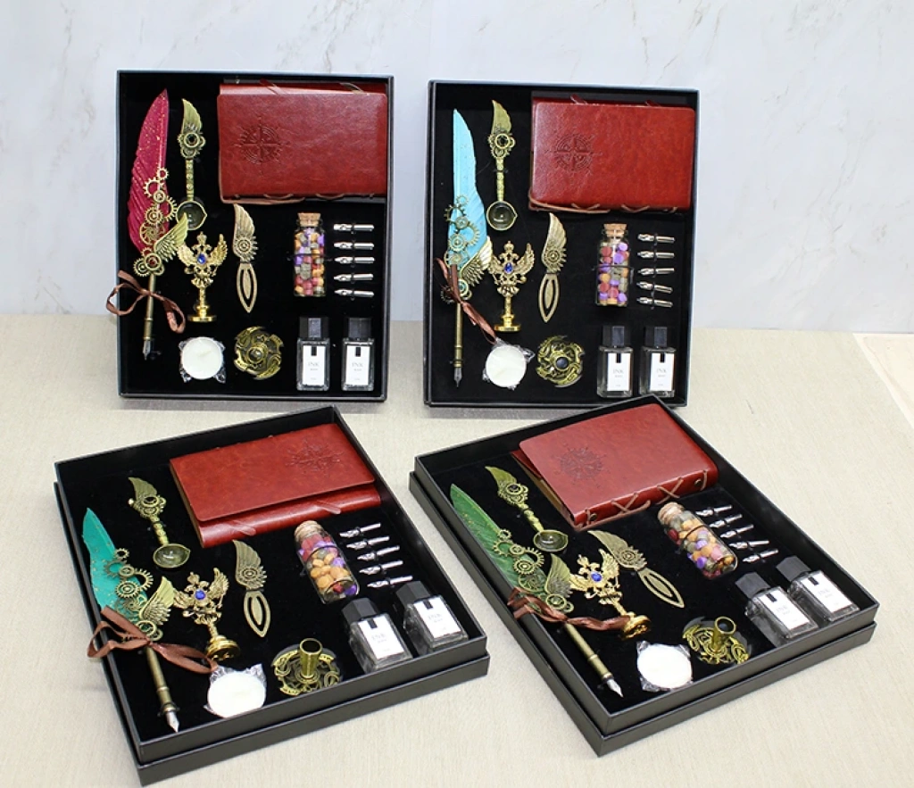 DERİ DEFTERLİ DİVİT HOKKA VE MÜHÜR SETİ MODEL 1 Ürün Özellikleri Deri Defterli Divit Hokka ve Mühür Seti Model 1, nostaljik yazım deneyimini zengin içerik ile bir araya getiren özel ve koleksiyon niteliğinde bir settir. 30x25 cm boyutundaki şık sunum kutusu içerisinde yer alan deri kapaklı defter, klasik divit kalem, değiştirilebilir uçlar, hokka mürekkebi, balmumu ve mühür aparatı; hem fonksiyonel hem de dekoratif kullanım için özenle hazırlanmıştır. Deri defter, kişisel notlar, günlük tutma, özel yazılar ve kaligrafi çalışmaları için ideal bir alan sunarken divit kalem ve mürekkep seti nostaljik bir yazı deneyimi yaşatır. İçerikte bulunan mühür ve balmumu aksesuarları sayesinde davetiyeler, mektuplar ve özel belgeler için kişisel mühürleme yapılabilir. Renk seçimi yapılamaz; görseldeki renklerden biri karışık olarak gönderilir. Hem hat sanatıyla ilgilenenler hem de özel bir hediye arayanlar için mükemmel bir settir. Paket İçeriği 1 adet Deri Defterli Divit Hokka Ve Mühür Seti Model 1