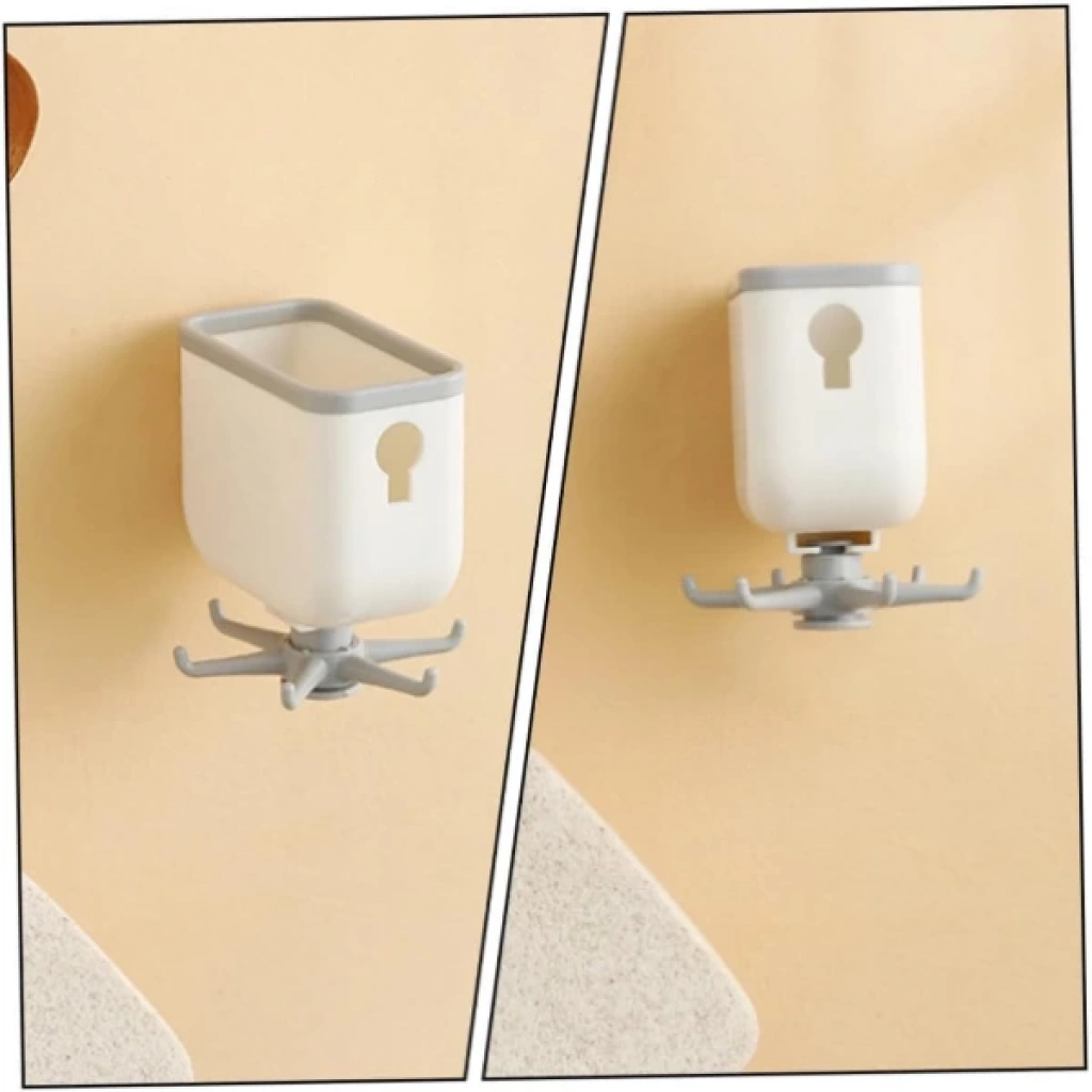 DÖNER ASKILI ORGANİZERÜrün Özellikleri Döner Askılı Organizer, kullanışlı yapısıyla her alanda işinizi kolaylaştırır. Üst kısmında sünger, tel ya da küçük temizlik ürünleri gibi eşyaları koymak için uygun bir hazne bulunur. Alt kısmında ise 360° dönebilen askı kancaları yer alır. Döner mekanizma, 4 adet askı ile bez, fırça, eldiven, kepçe gibi eşyaların düzenli bir şekilde asılmasını sağlar. Vidalama gerektirmez ve güçlü yapışkanlı yüzeyi sayesinde düz yüzeylere kolayca monte edilebilir. Dayanıklı, nemden etkilenmeyen kaliteli plastikten üretilmiştir. Minimal tasarımı ile banyo, mutfak ve diğer alanlar için uyumlu bir dekorasyon unsuru oluşturur. Mutfak, banyo, çamaşır odası, temizlik dolabı gibi çeşitli alanlarda kullanıma uygundur. Paket İçeriği 1 Adet Döner Askılı Organizer