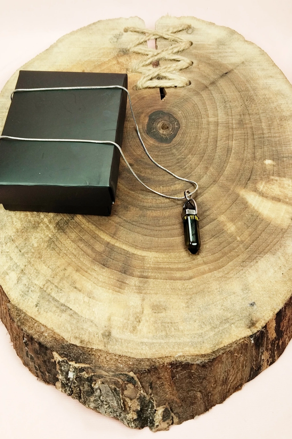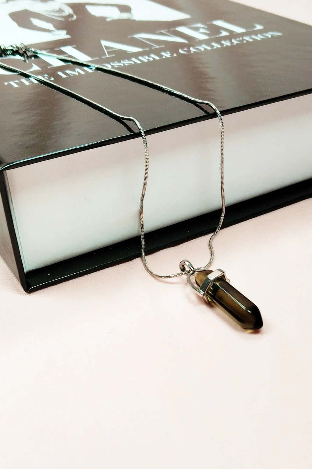 Dumanlı Kuvars Doğal Taşı Zincirli El Yapımı Kolye Uç: 3 Cm Zincir: 20 Cm Kutulu