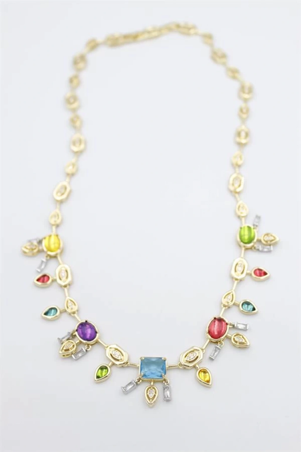 HarmonyAura Pirinç Gold Renk Zirkon Taşlı Çiçek Model Kadın Kolye