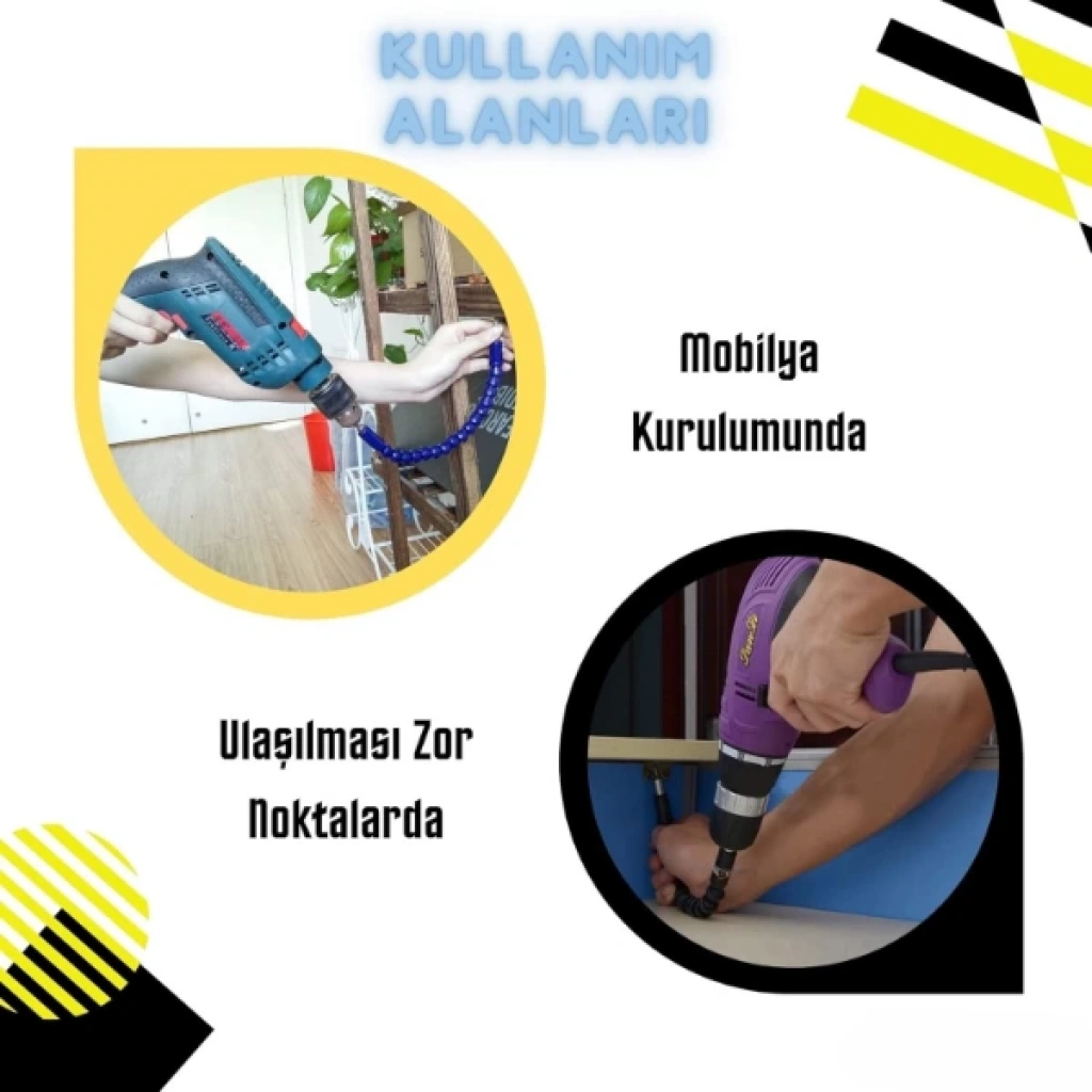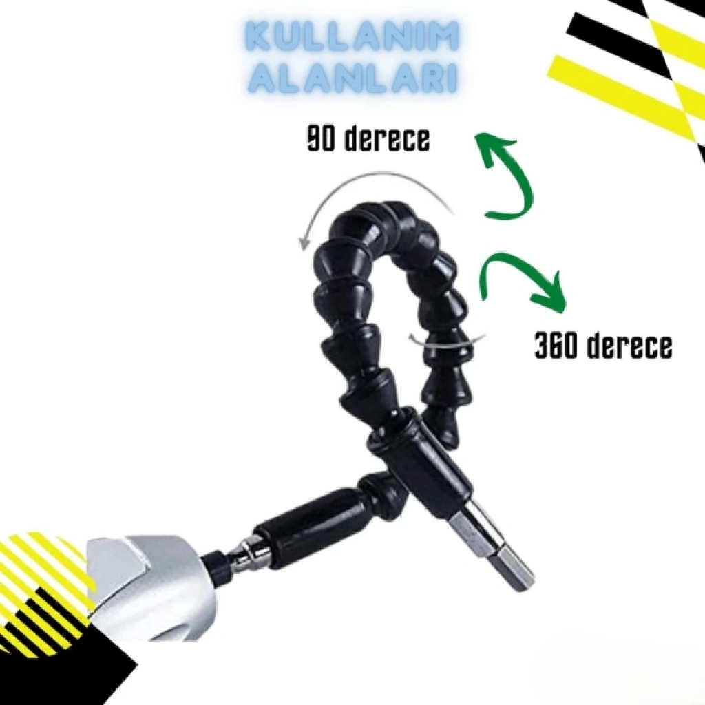 ESNEK ŞAFTLI TORNAVİDA UCU SETİÜrün Özellikleri Esnek şaftlı tornavida ucu seti, Phillips (Yıldız), düz uçlu, Torx (Yıldız-çentikli), Hex (Altıgen) gibi çeşitli uç tipleriyle farklı vida başlıklarına uyum sağlar. PH, H, T, SL gibi uç tipleriyle geniş bir kullanım alanı sunar. Esnek uzatma aparatı, ulaşılması zor yerlerde vidalama yapmanıza imkan tanır (örneğin mobilya köşeleri, dar alanlar gibi). Uç kısmı manyetiktir, böylece vida uçları kolayca tutturulur ve düşmez. Elektrikli matkap, vidalama makinesi veya manuel tornavida ile uyumludur. Evde tamir işleri, mobilya montajı, elektronik cihaz açma işlemleri için oldukça kullanışlıdır. Esnek şaftı 360 derece bükülebilir, bu da sert açılarda rahat çalışmanızı sağlar. Paket İçeriği 1 Adet Esnek Şaftlı Tornavida Ucu Seti