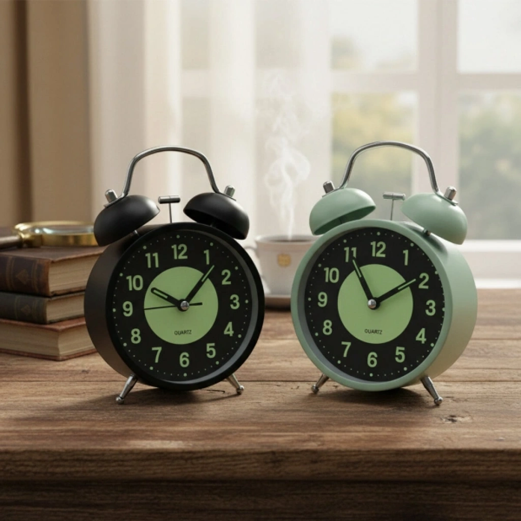 FOSFORLU METAL ÇALAR SAAT Ürün Özellikleri Fosforlu Metal Çalar Saat, klasik tasarımı modern gece görüş teknolojisiyle buluşturarak uykularınızı bölmeden zamanı takip etmenizi sağlıyor. 11 cm boyutundaki sağlam metal gövdesi ve ikonik ikiz çan (kulaklı) yapısıyla hem nostaljik bir hava estirir hem de dayanıklı bir kullanım sunar. Bu metal masa saati, en önemli özelliği olan fosforlu kadran yapısı sayesinde gün ışığını depolar ve karanlıkta ek bir ışığa ihtiyaç duymadan saati görebilmenize olanak tanır. Ayrıca, tamamen karanlık ortamlar için butona basıldığında yanan entegre gece ışığı fonksiyonu da mevcuttur. Güçlü alarm mekanizması ile en derin uykulardan bile tam vaktinde uyanmanızı garanti eder. Pilli çalışma sistemi sayesinde kablo derdi olmadan her yerde kullanılabilir. Mat siyah ve nane yeşili renk seçenekleriyle sunulan bu modern çalar saat, kontrast renkli büyük rakamları sayesinde gün içinde de mükemmel okunabilirlik sunar. Yatak odası komodinleri, çalışma masaları veya ofisler için ideal olan bu ürün, hem işlevsel bir zaman takipçisi hem de şık bir dekoratif obje olarak sevdikleriniz için harika bir hediyelik eşya alternatifidir. Ürün Teknik Özellikleri Özellik Açıklama Ürün Adı Fosforlu Metal Çalar Saat Boyut 11 cm (Çap) Malzeme Yüksek Kaliteli Metal Kasa ve İkiz Çan Mekanizması Kadran Özelliği Fosforlu Gece Görüşlü Yüzey Fonksiyon Güçlü Çalar Saat (Alarm) ve Manuel Gece Işığı Güç Kaynağı Pilli (Standart pil ile çalışır) Renk Seçeneği Siyah ve Yeşil (Görseldeki renklerden biri karışık gönderilir) Paket İçeriği 1 Adet Fosforlu Metal Çalar Saat