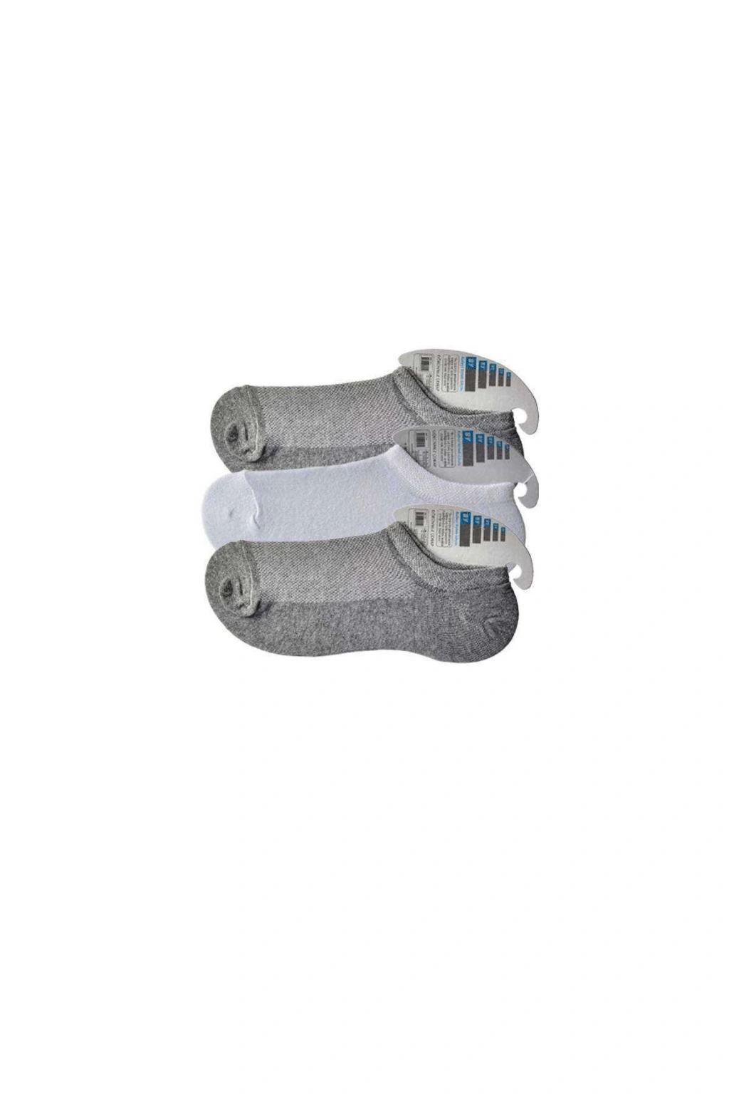 Gri Ve Beyaz Erkek Görünmez Çorap 3 Çift