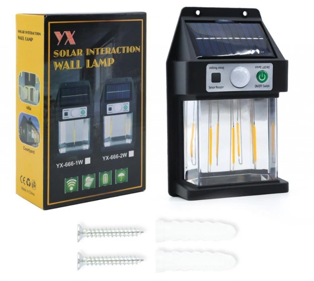• Güneş Enerjili Hareket Sensörlü Duvar LambasıÜrün Açıklaması:Güneş enerjili hareket sensörlü duvar lambası, açık alanlarınız için ideal bir aydınlatma çözümü sunar. Güneş enerjisiyle şarj edilen bu lamba, enerji tasarrufu sağlar ve kablo gerektirmeye