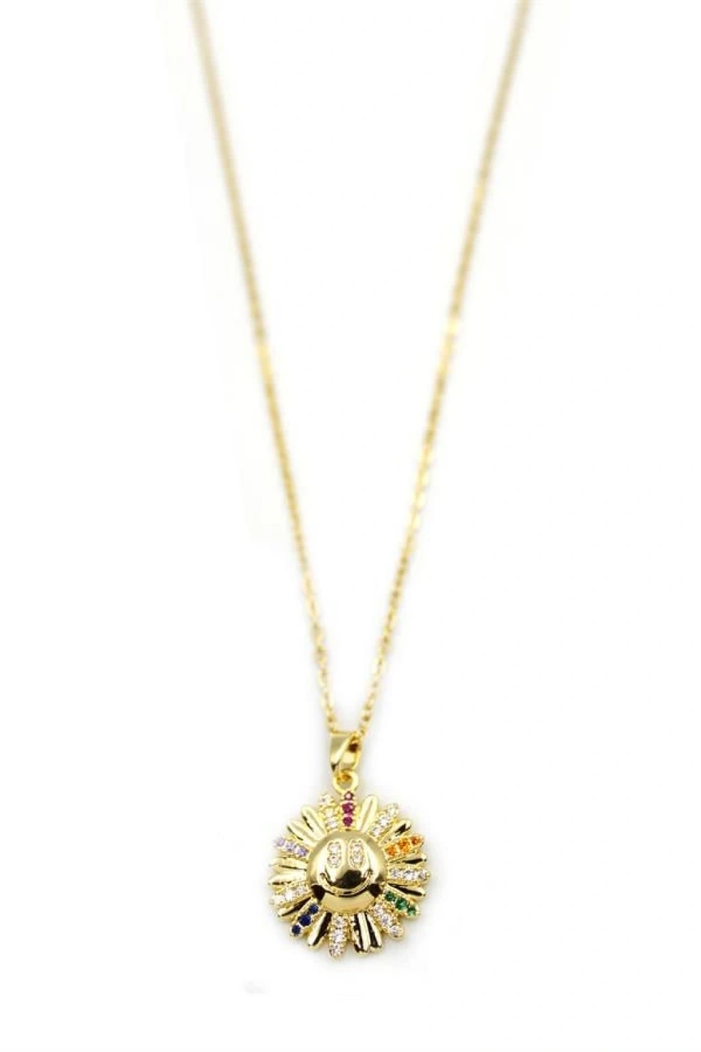 HarmonyAura Pirinç Gold Renk Güneş Model Kadın Kolye