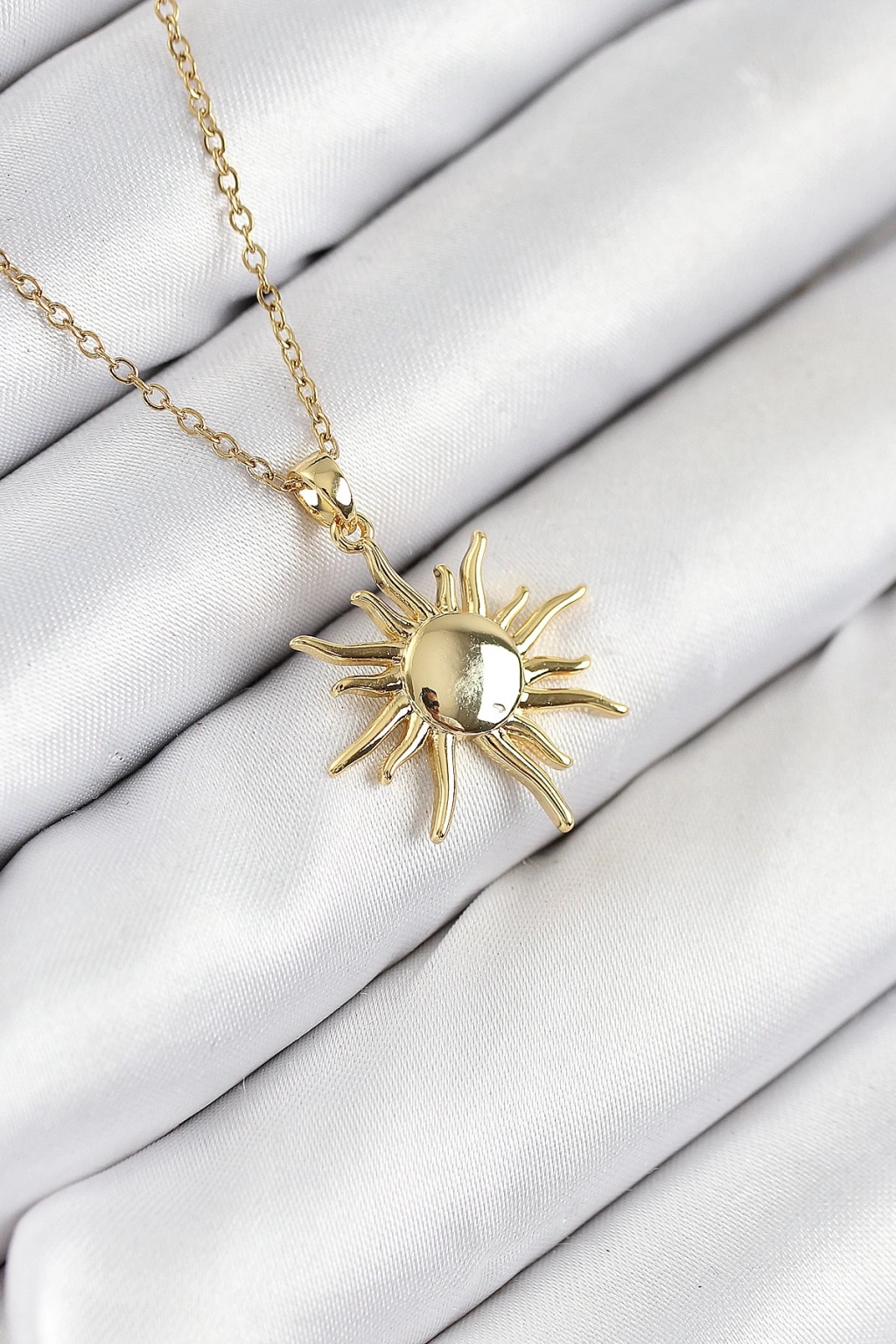 HarmonyAura 316L Çelik Güneş Model Gold Renk Kadın Kolye