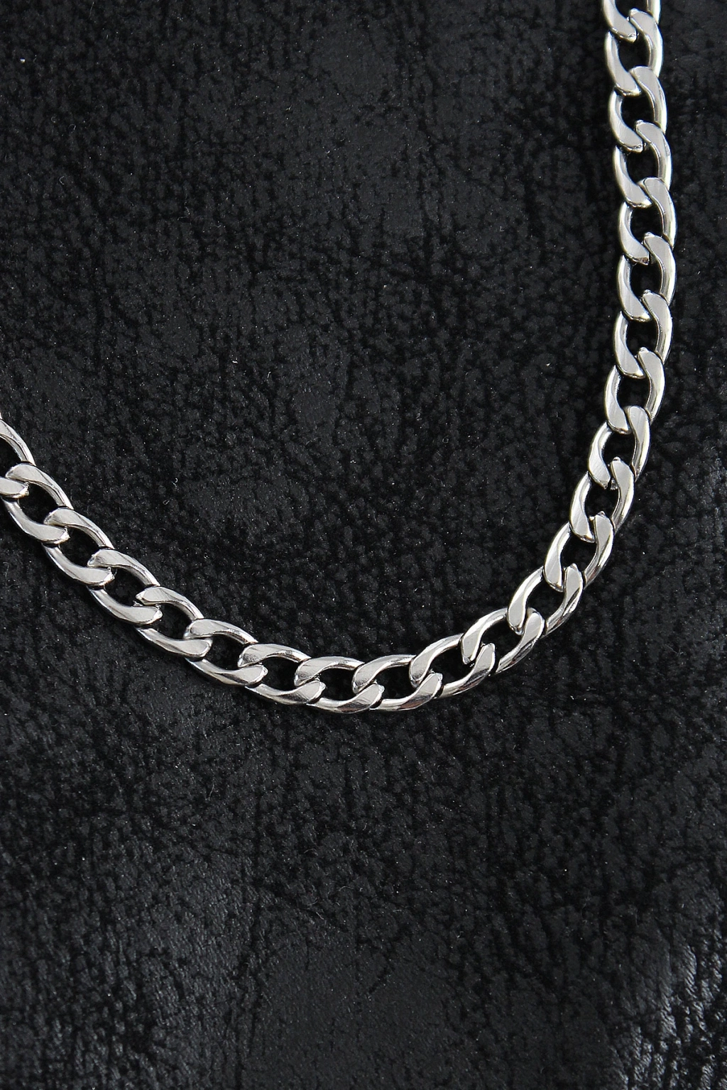 HarmonyAura 316L Çelik Kalın Klasik Zincir Model Gümüş Renk Erkek Kolye