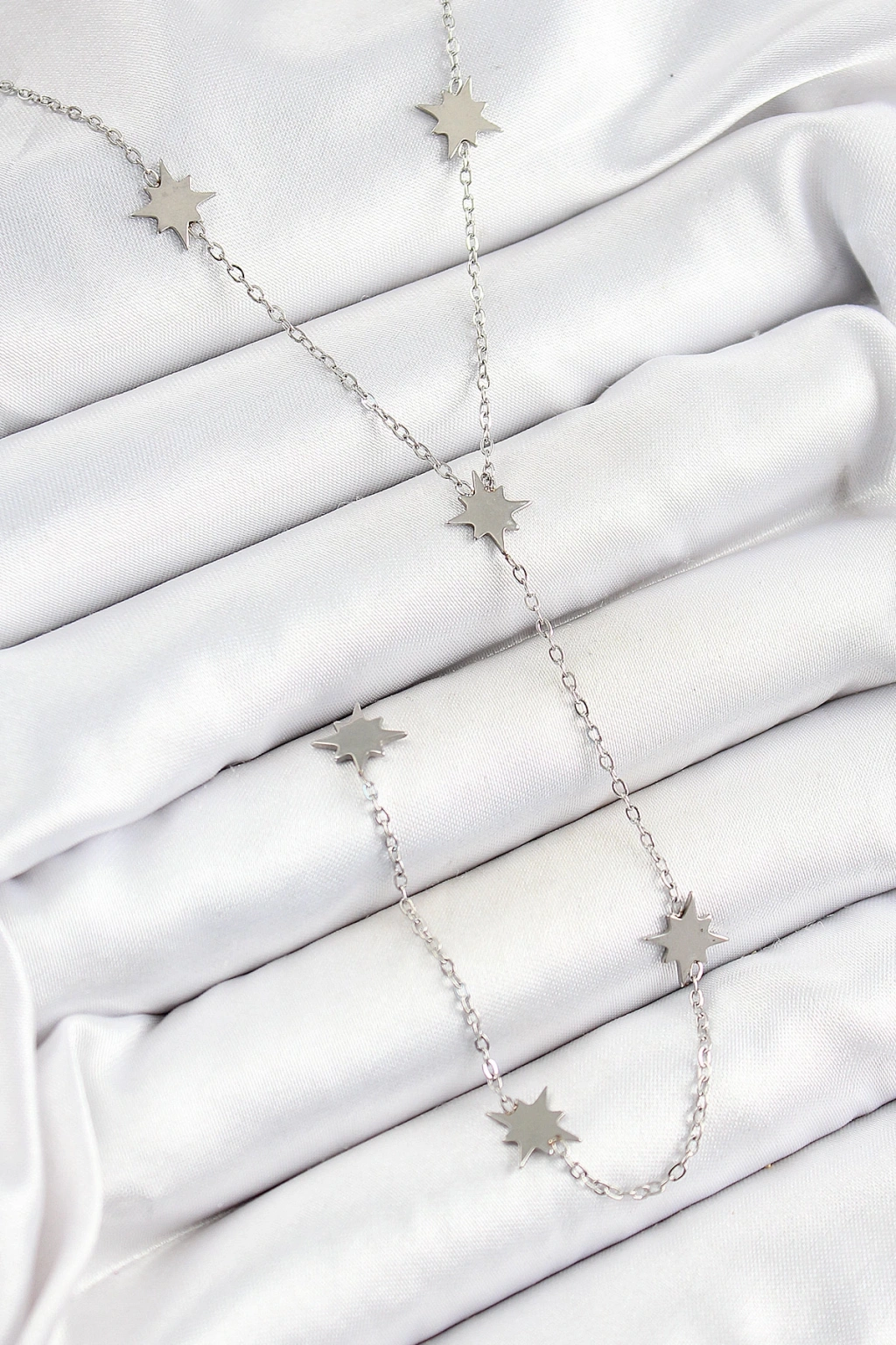 HarmonyAura 316L Çelik Kutup Yıldızı Figürlü Y Model Gümüş Renk Kadın Kolye