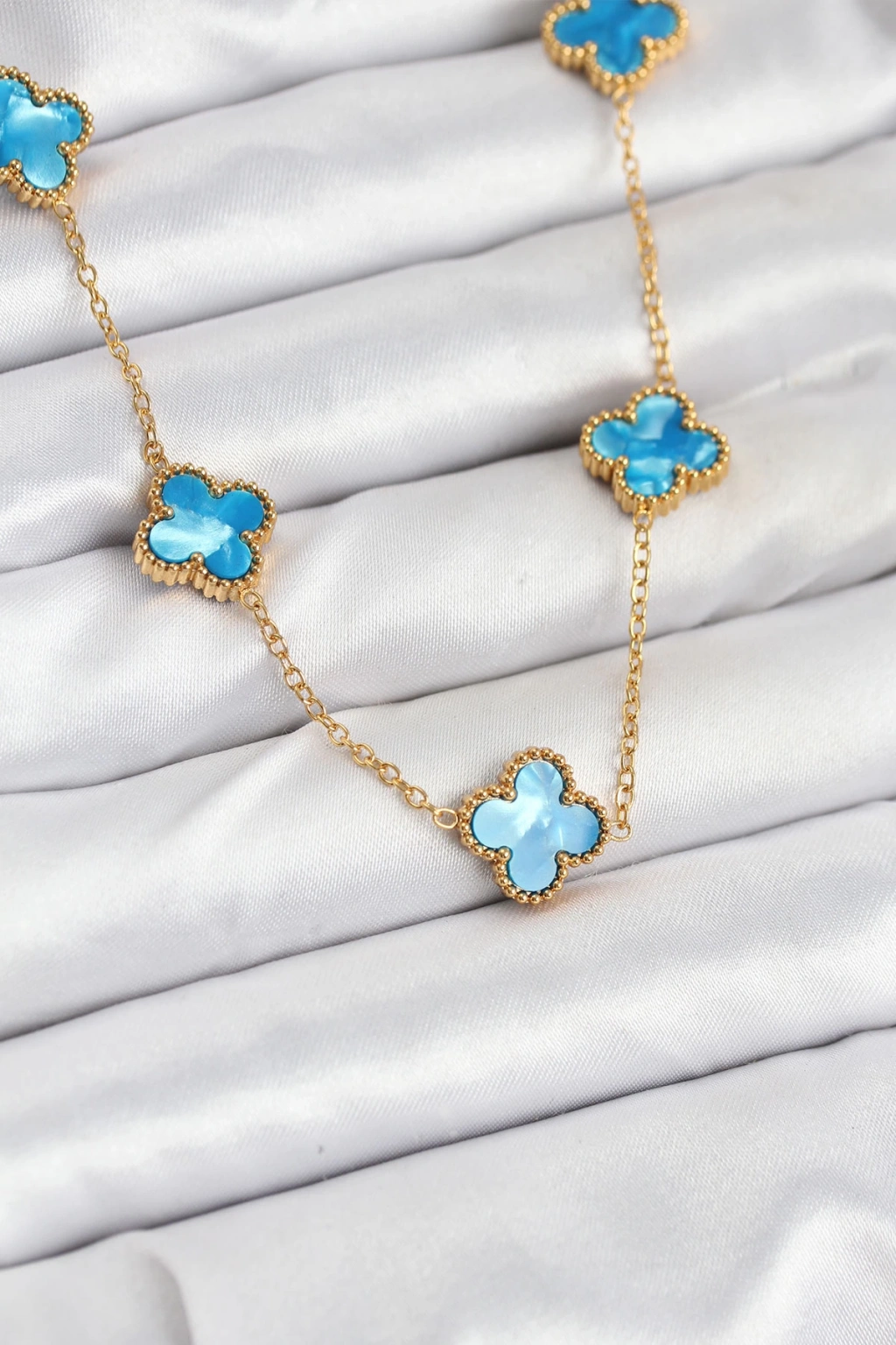 HarmonyAura 316L Çelik Zincir Gold Buz Mavisi Renk Yonca Kolye