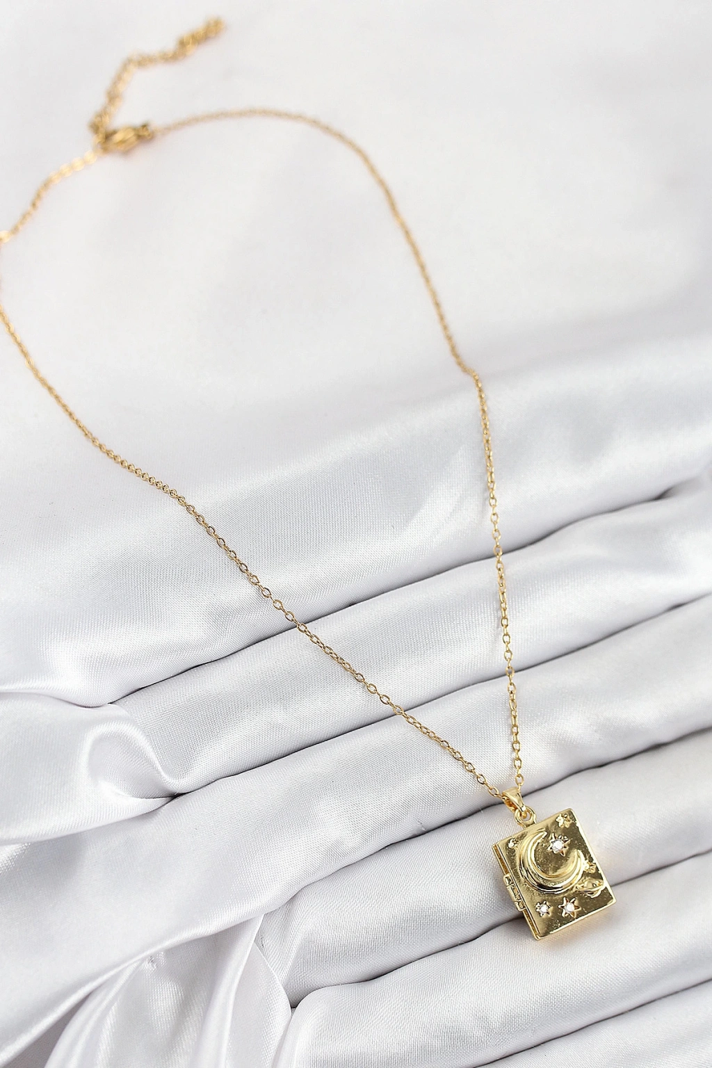HarmonyAura 316L Çelik Zirkon Taşlı Açılabilr Kapaklı Kitap Model Gold Renk Kadın Kolye