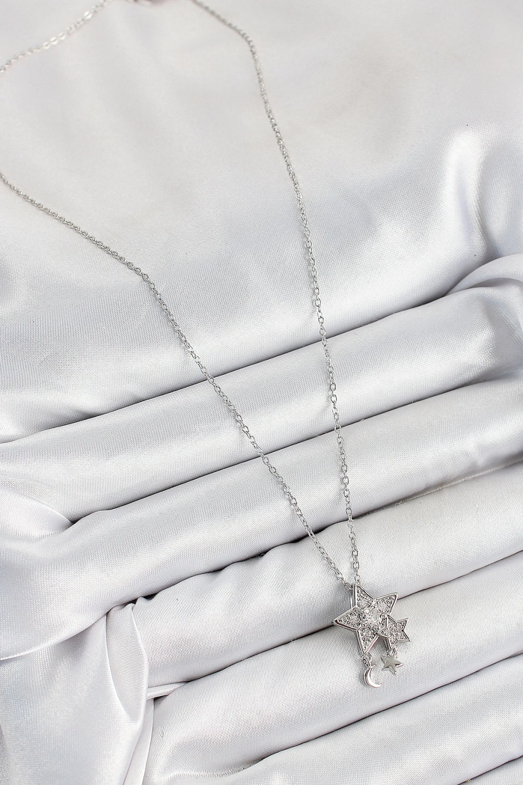 HarmonyAura 316L Çelik Zirkon Taşlı Sallantılı Yıldız Model Gümüş Renk Kadın Kolye