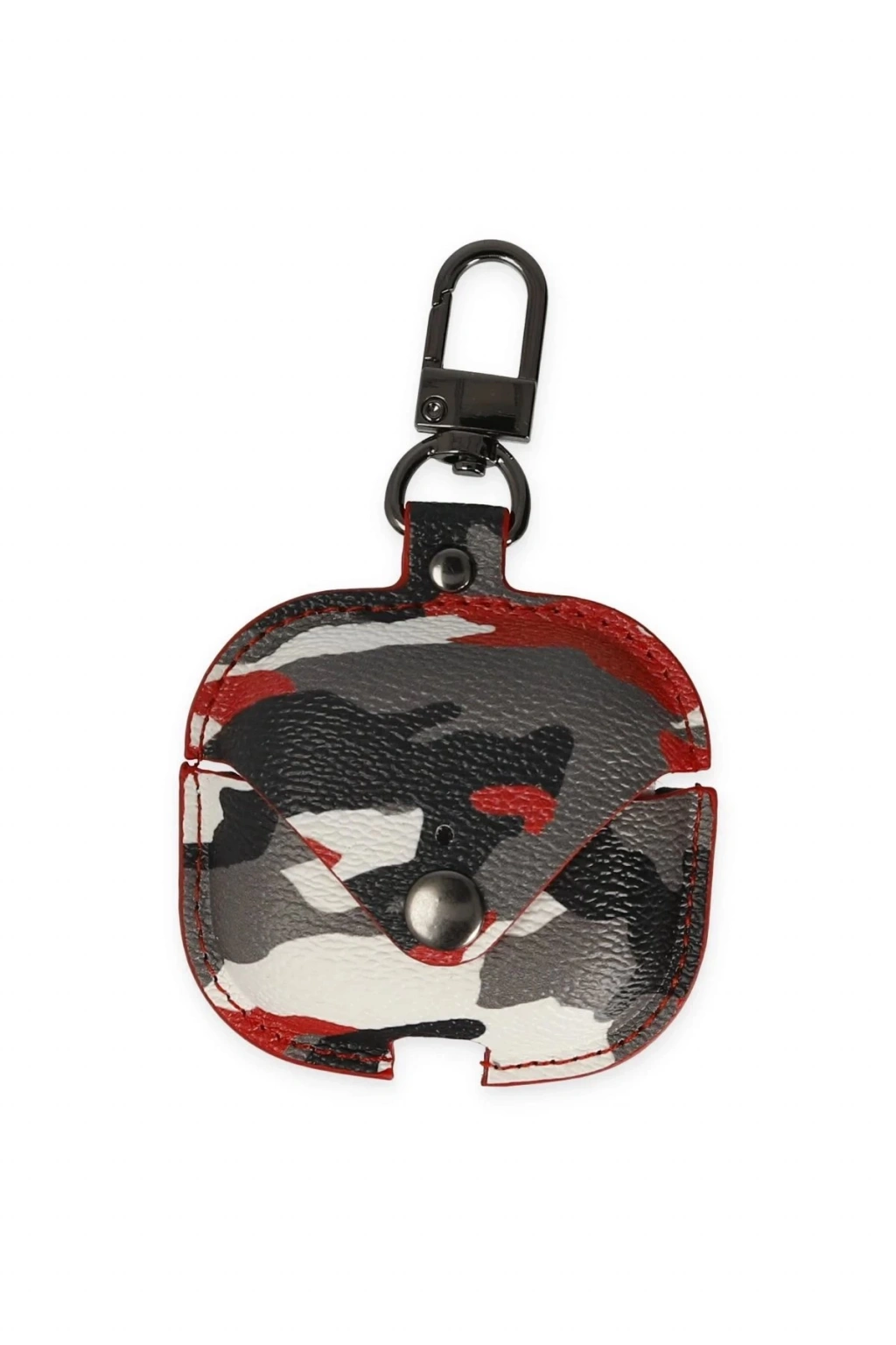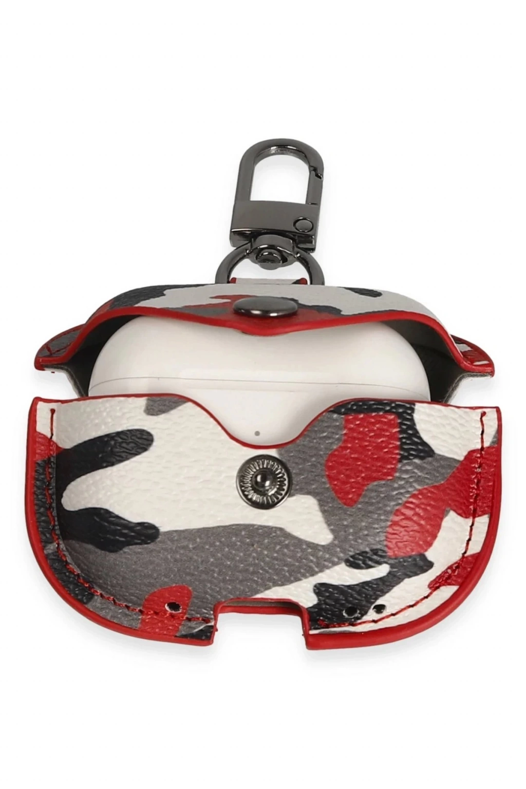 HarmonyAura Airpods Pro 2 (2.nesil) Çanta Kamuflaj Deri Kılıf - Kırmızı