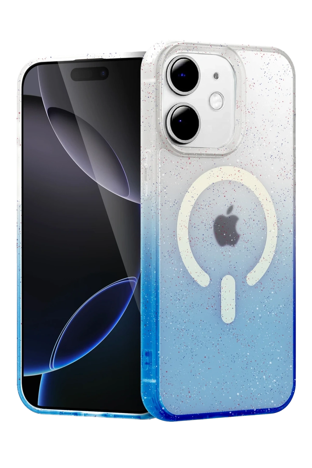 HarmonyAura Apple iPhone 12 Pummel Shiny Magsafe Kapak - Mavi